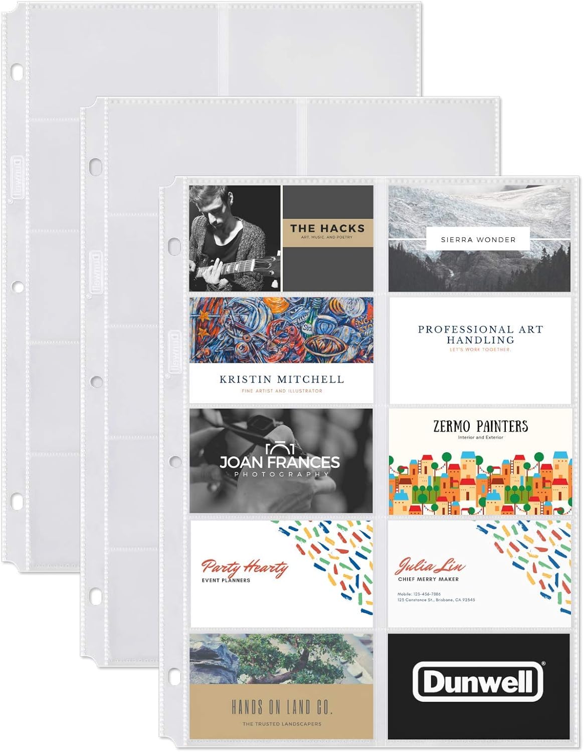 Dunwell Business Card Holder Sleeves (10 Pack for 200 Cards), Heavyweight Plastic Sheet Protect, Each Sleeve Holds 20 2x3.5 Namecards, 3-Hole Punched, Fits 3-Ring Binders