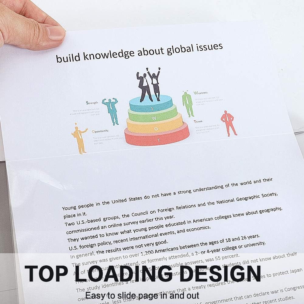 - CONVENIENT DESIGN: The top loading design make it easy to slide paper in and out. Sheet protectors with 11 holes will keep papers safe in the most ring binders, paper binders, folders or other office products.