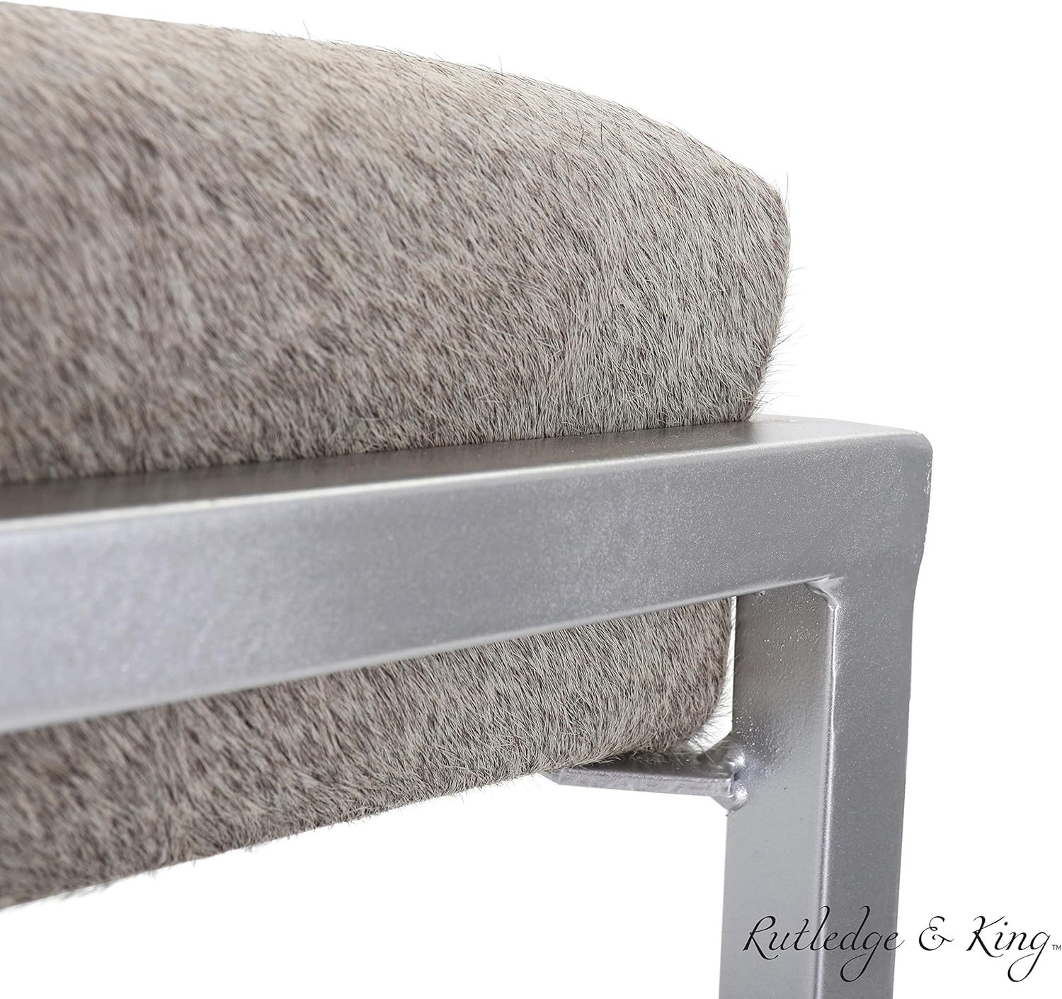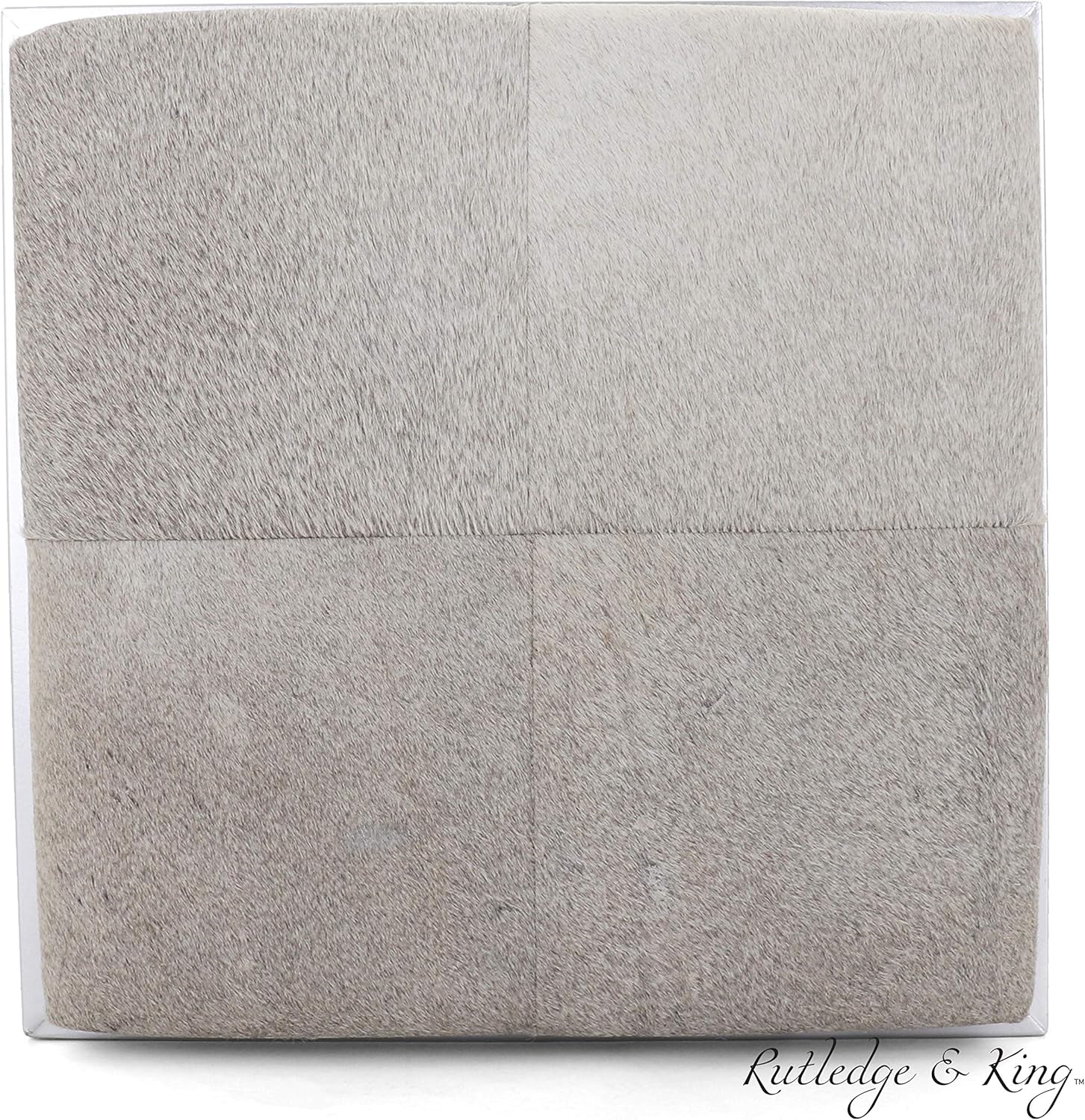 - REAL COWHIDE SEAT - The Hampton cowhide ottoman / stool features a grey and white cowhide cushion. Cowhide colors will vary slightly from photos as each cowhide used is completely unique for a beautiful one-of-a-kind piece. Rutledge & King offers the designer look and quality at an unmatched price. (DIMENSIONS: 18.5"L x 18" W x 18" H)