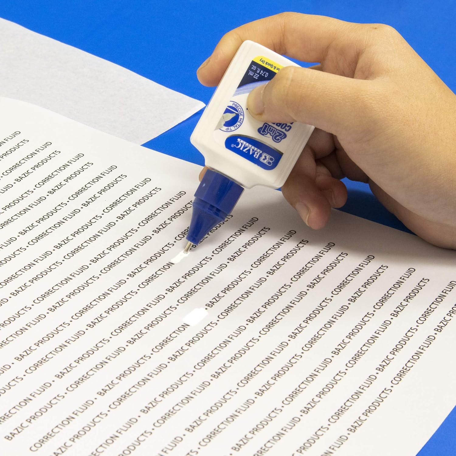 BAZIC Correction Liquid 2 in 1 (0.74 oz / 22 ml), Foam Brush & Precise Metal Tip Applicator, Instant Corrections Pen White Out Wipe Out Fluid, 2-Pack