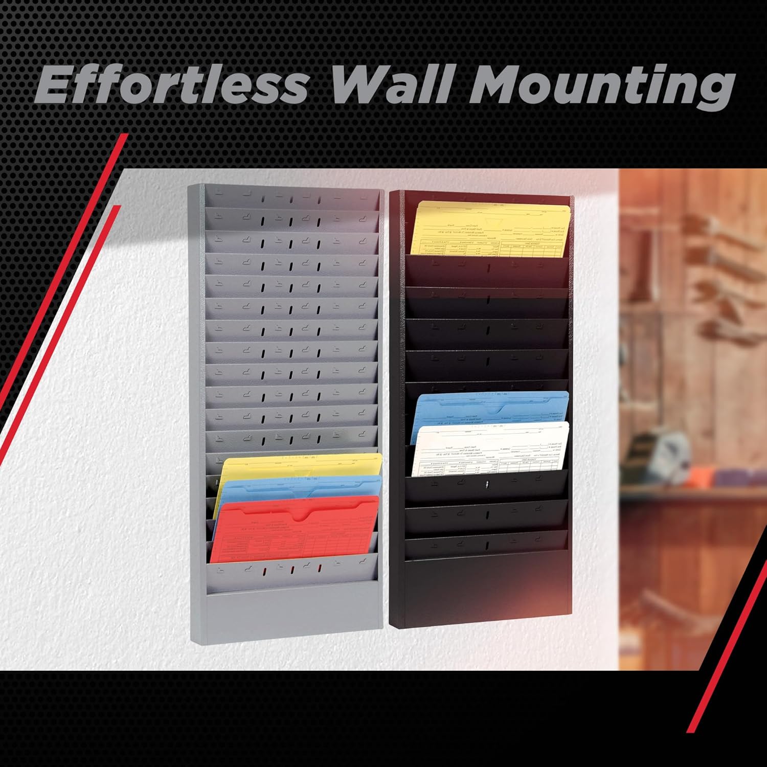 PROLific Automotive Products CHAMP Repair Order Rack, 12-Pocket Wall Mount Organizer, Heavy-Duty Alloy Steel, Powder Coated, Ideal for Auto Workshops and Garages - Black