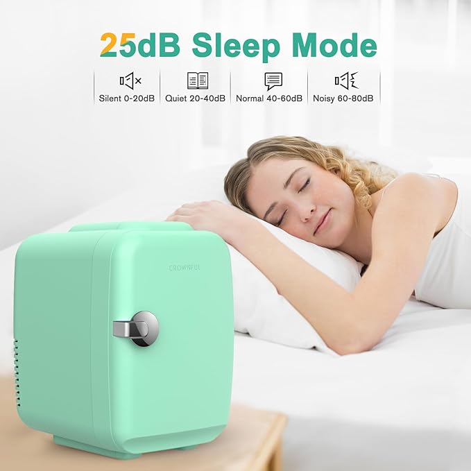 CROWNFUL Mini Fridge, 4 Liter/6 Can Portable Cooler and Warmer Personal Refrigerator for Skin Care, Cosmetics, Beverage, Food,Great for Bedroom, Office, Car, Dorm, ETL Listed (Green)