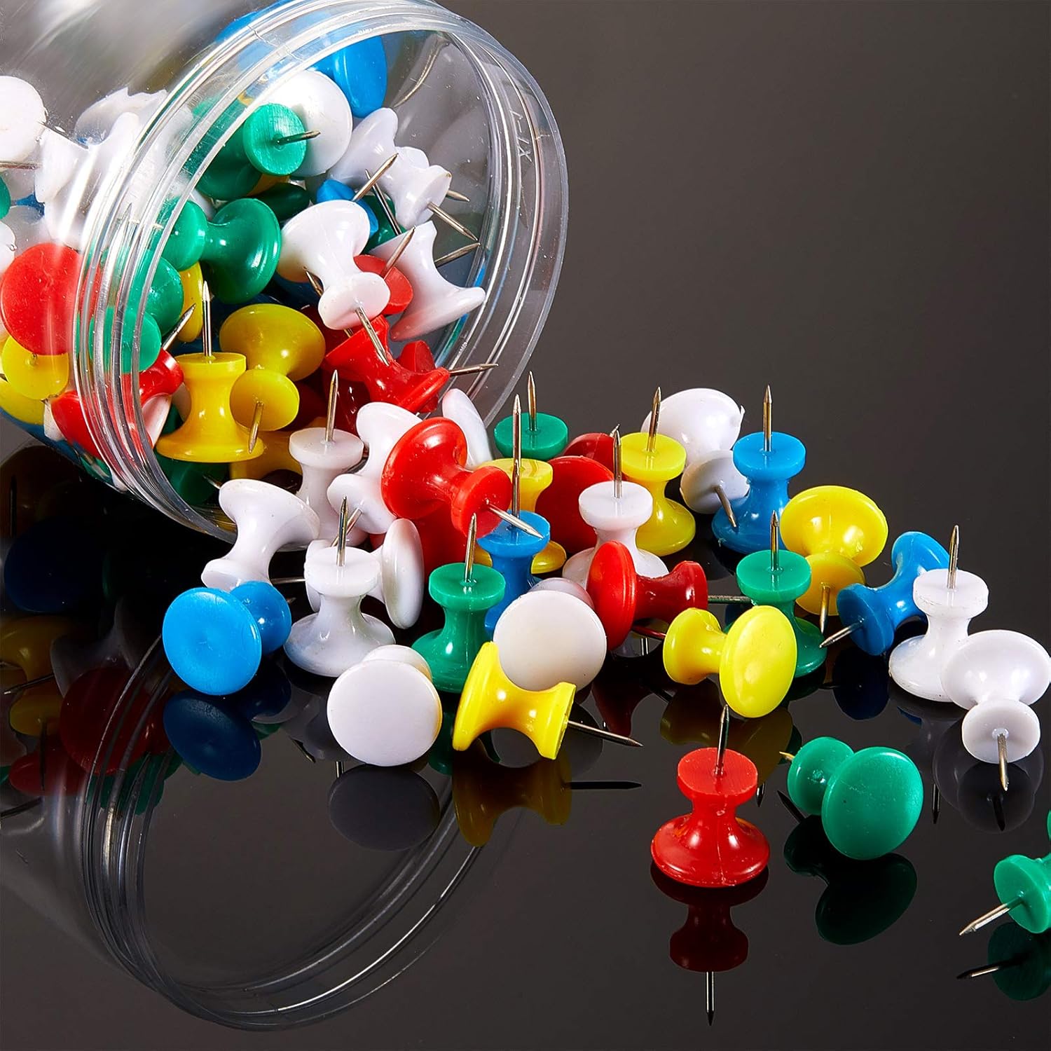 - What you get: these 100 pieces giant push pins come with a reusable plastic case, which makes it easy to keep your desktop or desk drawer organized, convenient for you to carry them to anywhere you want