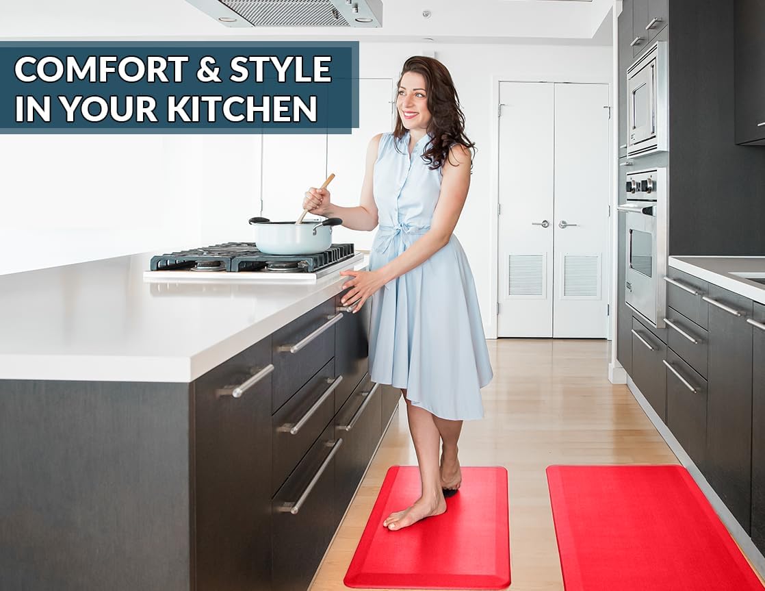 - Slip-Resistant and Stain-Resistant Surface: Stay safe and clean with our anti fatigue mats for kitchen floor that feature a non-slip backing to keep it securely in place. The stain-resistant material is easy to clean and ensures your mat looks new, even with daily use.