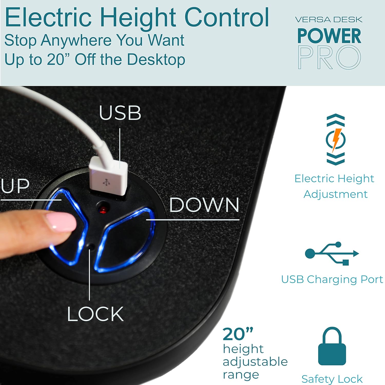 VERSADESK® PowerPro™ 40” x 24” Standing Desk Converter | 40 inch Electric Height Adjustable Sit to Stand Desk Riser w/ Keyboard Tray & USB Hub - Ergonomic Workstation for Home & Office, Black