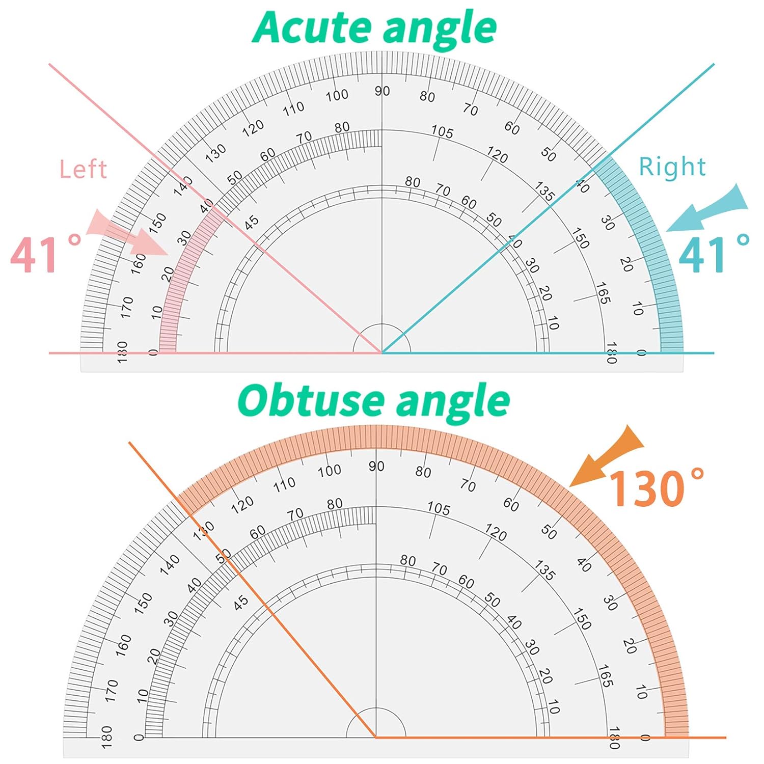 - Complete Geometry Kit: comes ready-to-use tools including 2 durable geometry compasses for circles and arcs, a 180-degree protractor, 2 set squares (30°/60° and 45°/90° triangles), and a straight edge ruler; everything students need for math class, engineering drawing, and technical drafting.