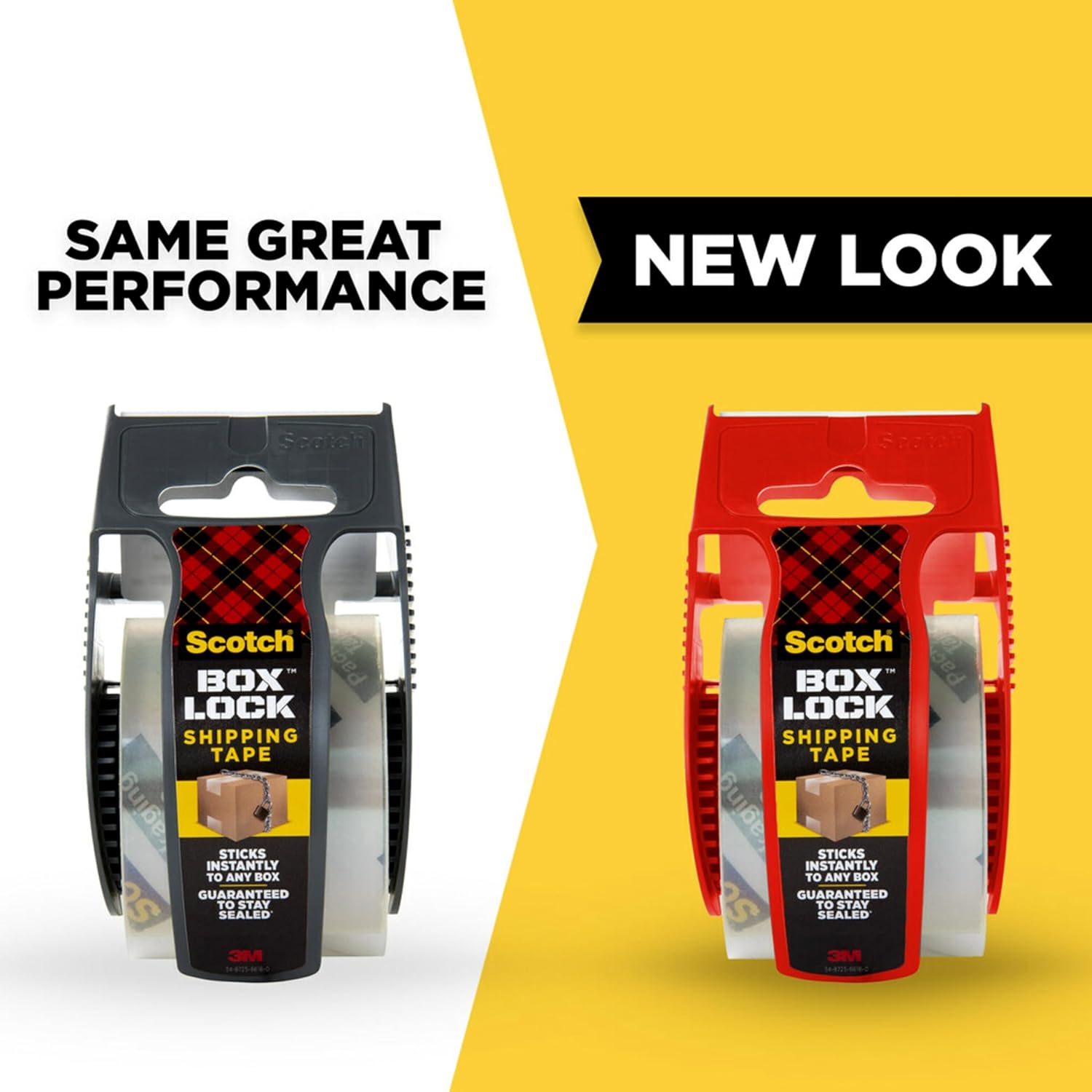 Scotch Box Lock Packing Tape, Clear Packaging Tape, Extreme Grip Box Tape for Holiday Shipping, 1.88 in. x 22.2 yd., 6 Tape Rolls with Dispensers