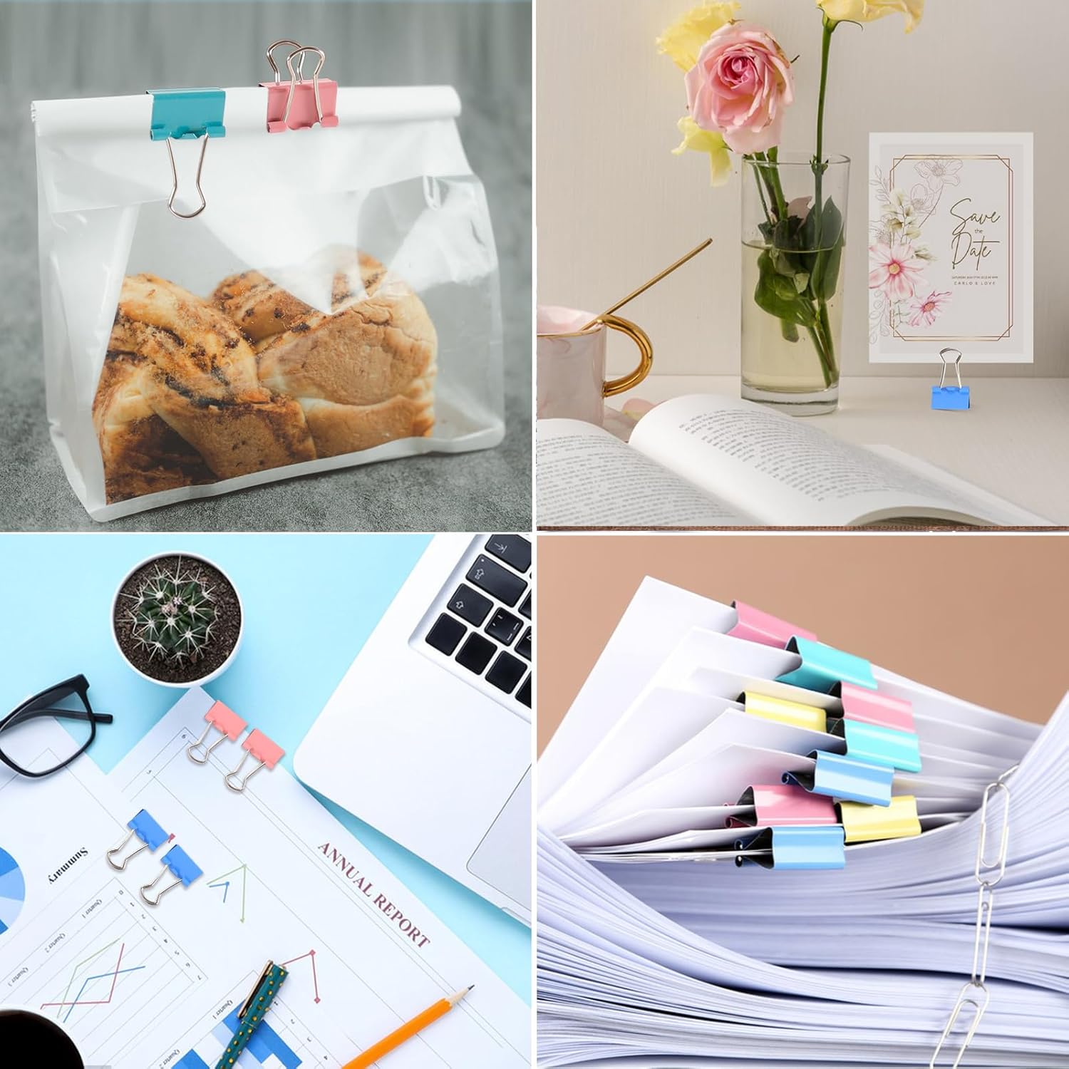 - Assorted Color : There are Red, Blue, Green, And Yellow. They can prevent papers from slipping and close open foo bags.