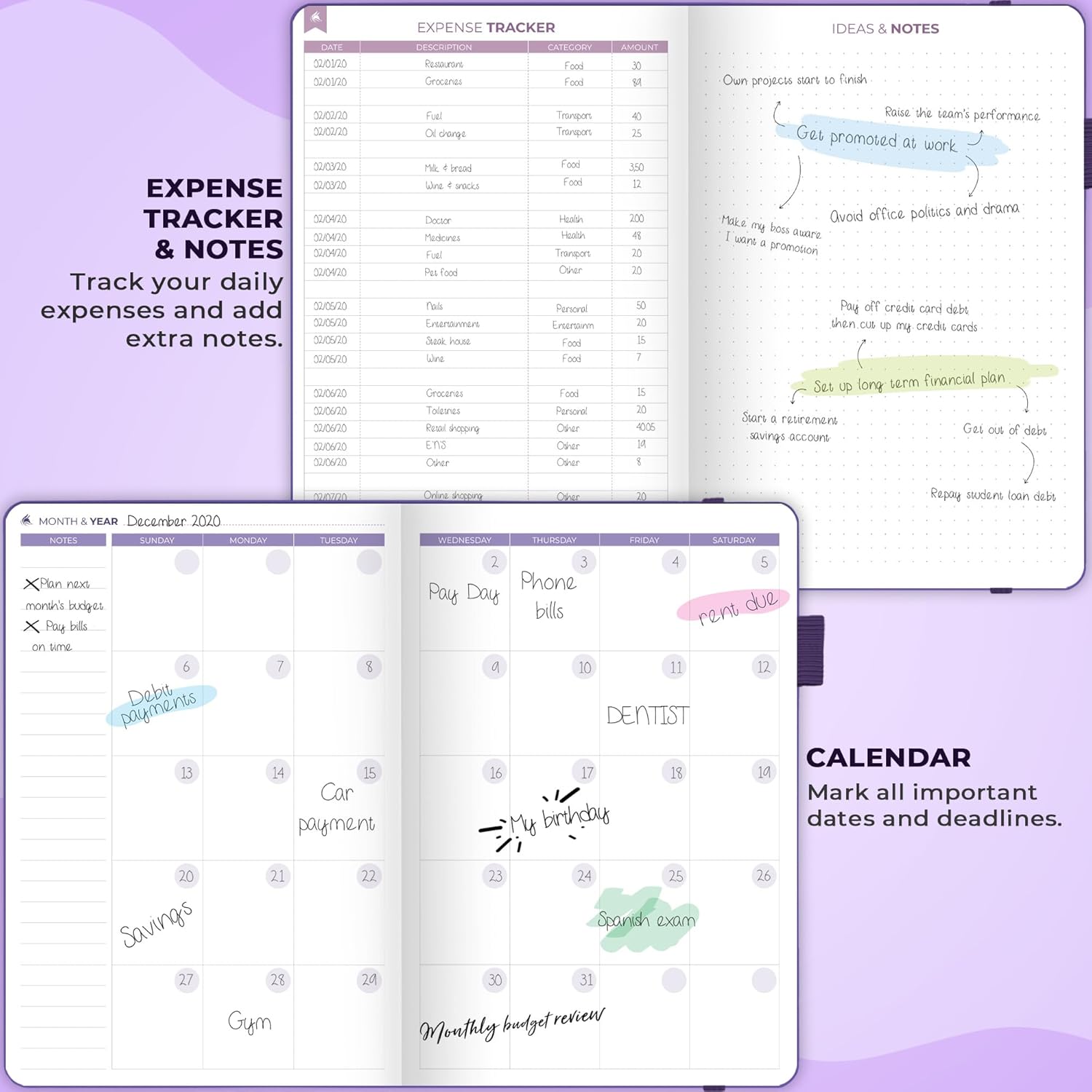 - PREMIUM QUALITY, A5 SIZE & STICKERS: This budget book measures 5.8 by 8.3 inches, and has a durable eco-leather hardcover, thick 120gsm paper, lay-flat binding, pen loop, elastic band, 3 bookmarks, pocket for receipts, stickers, and user guide.
