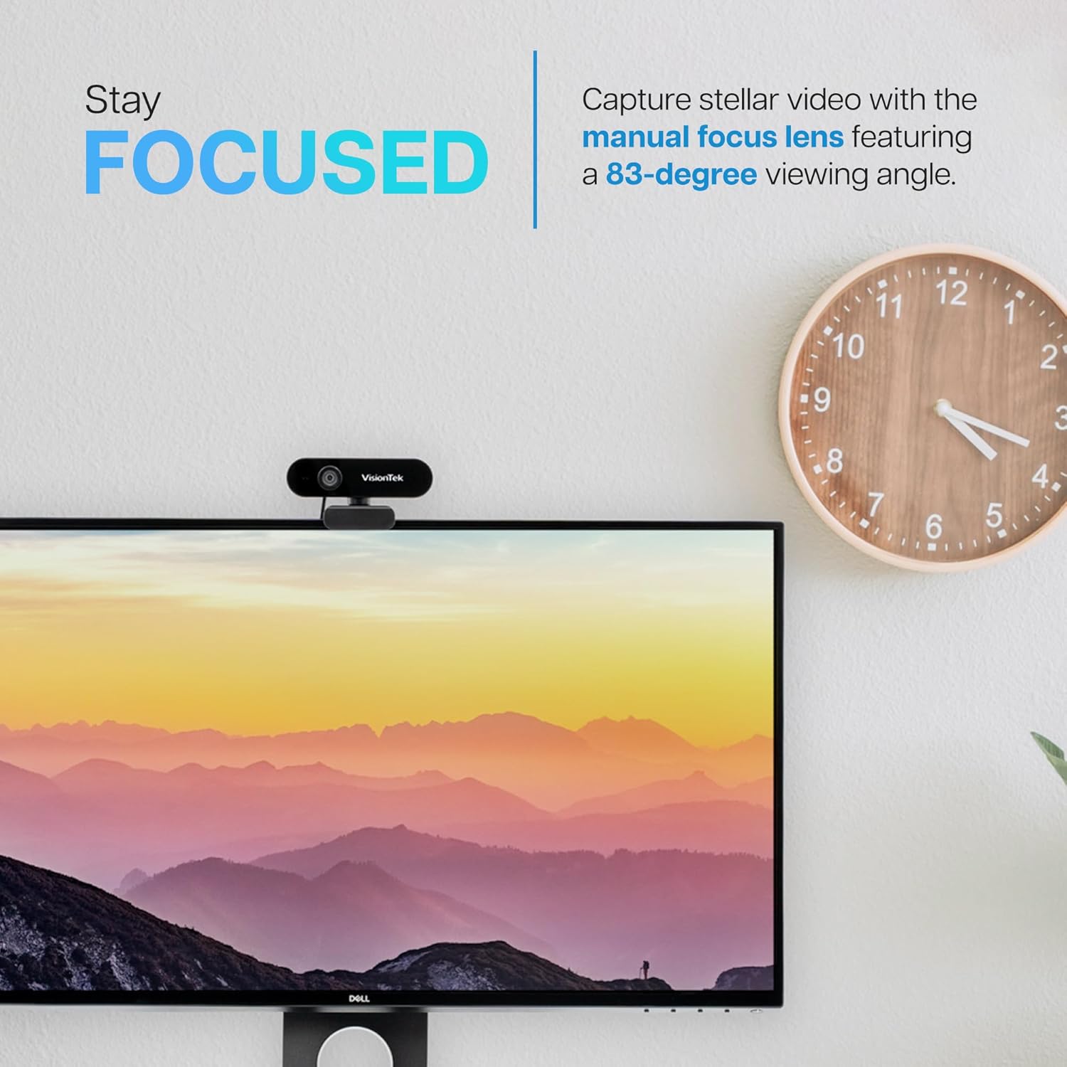 VisionTek VTWC30 Premium Full HD (1080P 30FPS) Webcam, for Windows, Mac, Linux, & Chromebook with Digital Dual Microphones, Manual Focus Lens, Privacy Cover, 83-Degree Viewing Angle
