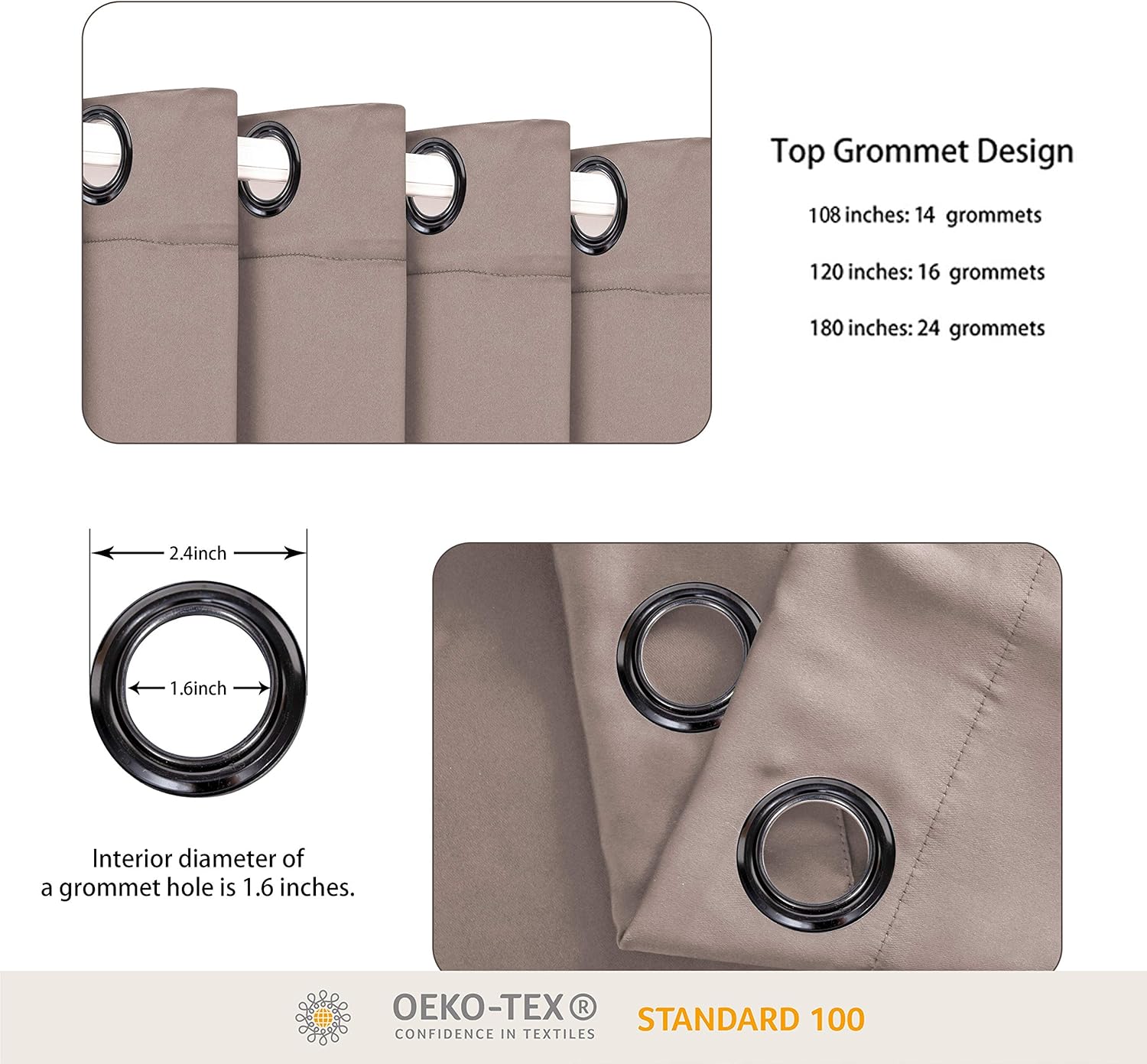 - WHAT'S IN THE PACKAGE? Each set includes 1 curtain panel, and each window drape measures 96-inch (8 ft) length by 108-inch (9 ft) width. 14 elegant metal grommets with 1.6-inch inner diameter, fit well with standard or decorative curtain rods, which makes the curtains easy to install and slide.