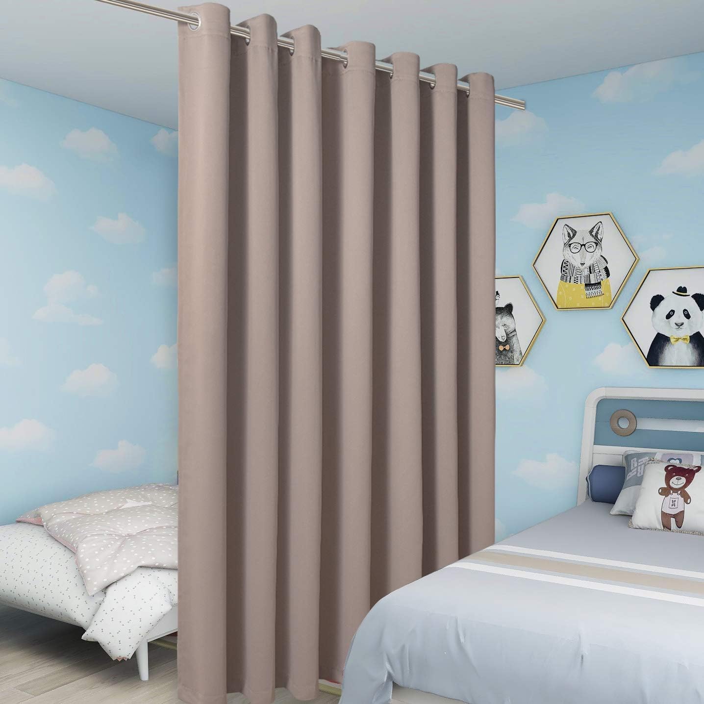 BONZER Room Divider Curtain Total Privacy Wall Noise Reducing Extra Wide Blackout Curtains for Patio Sliding Glass Door, 108L x 120W Inch (9L x 10W ft), 1 Panel, Khaki