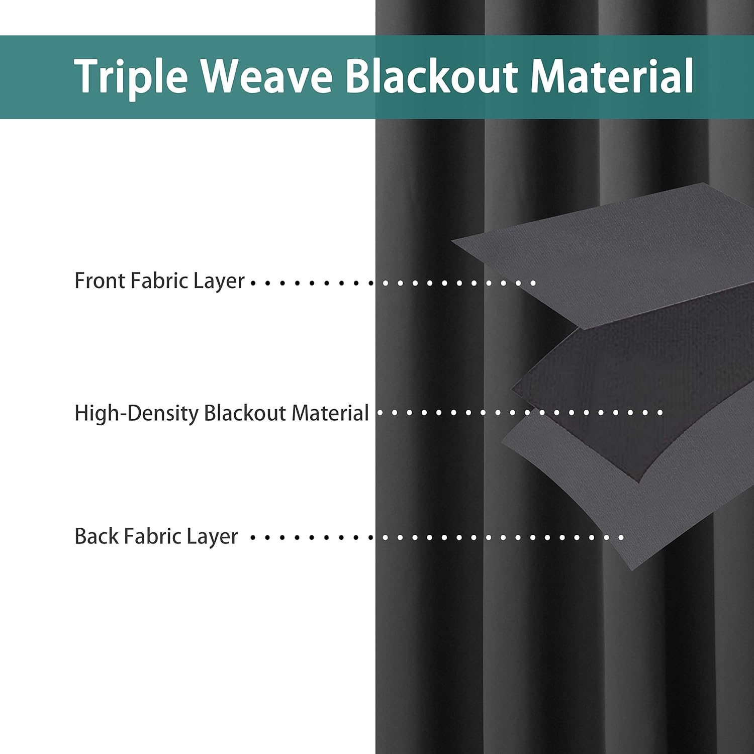 - PREMIUM BLACKOUT MATERIAL: Our room darkening curtain is made of 100% polyester fabric and have the same color with the front and back. Crafted in a certified STANDARD 100 by OEKO‑TEX factory from a durable soft and thick triple weave blackout fabric which block out 90% above sunlight and UV rays. Darker colors work better.