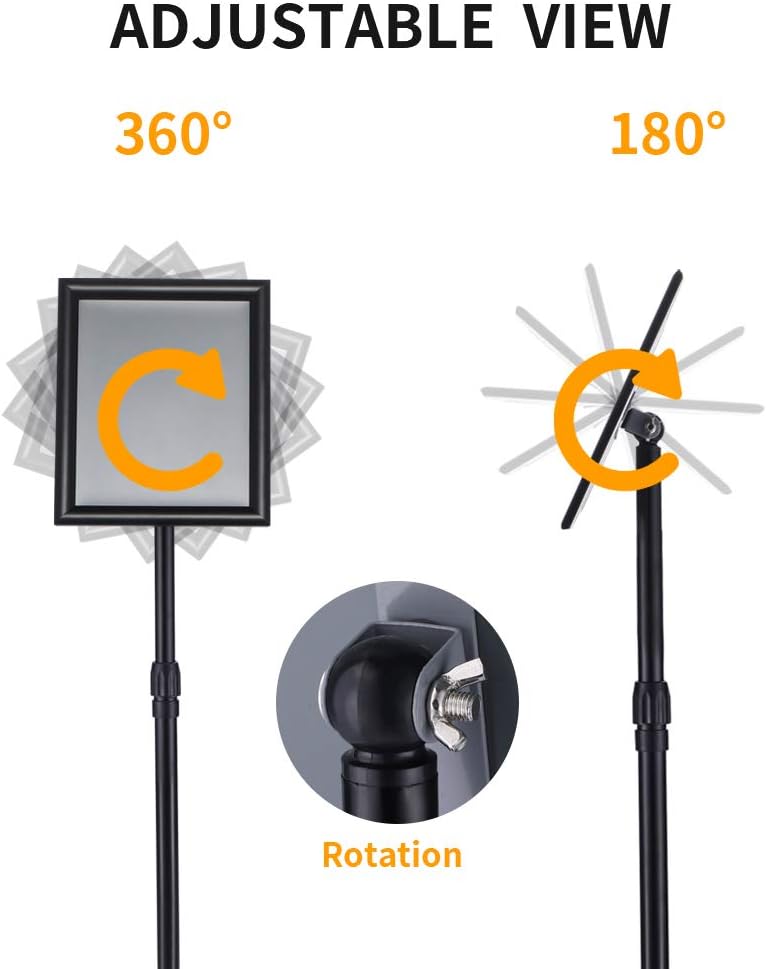 - ADJUSTABLE VIEW: INNOVSIGN 8.5 x 11 inch adjustable floor sign stand height is between 32" and 51" tall, the poster frame page can be rotated 360 degrees freely, which is convenient for people to browse in different directions