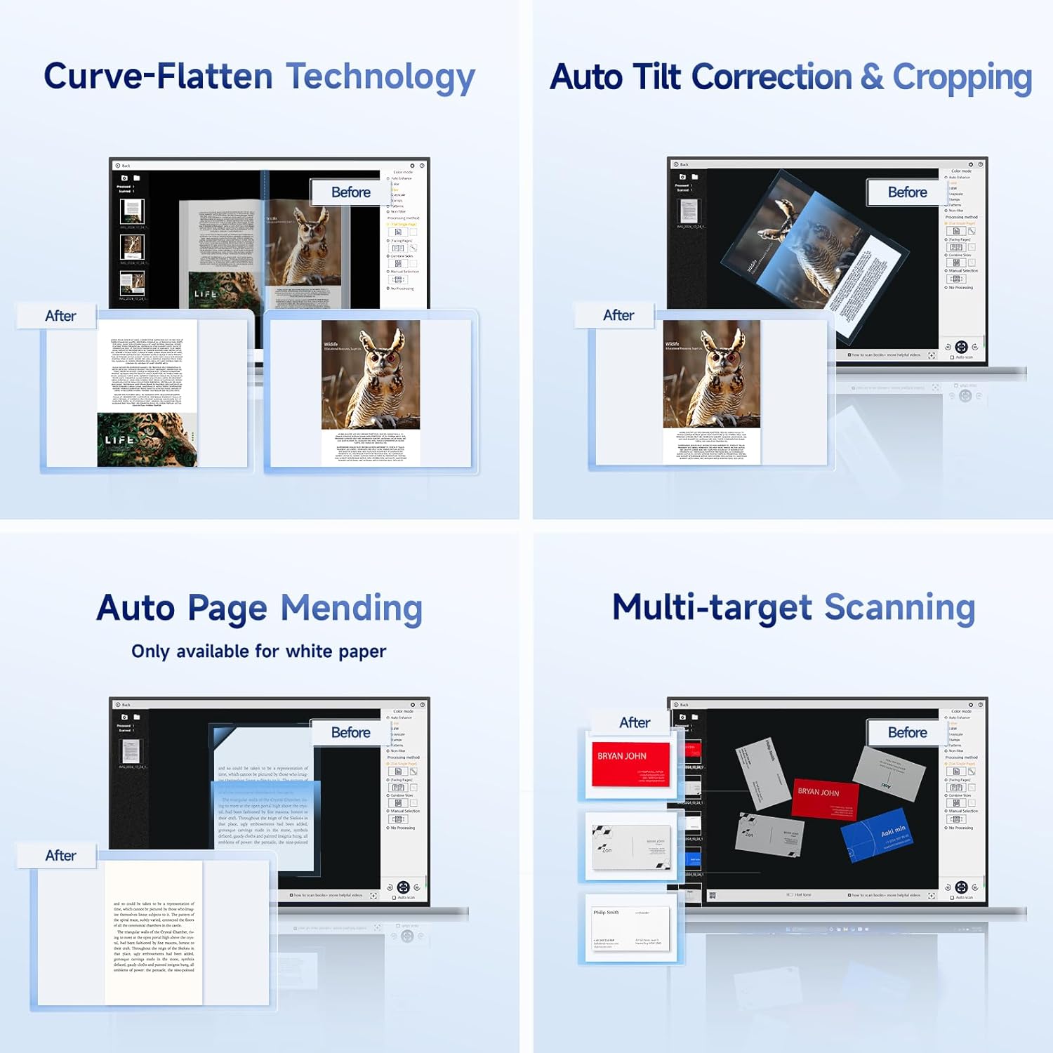 - High Resolution & AI Tech: CMOS 13MP (4160*3120, A4≈340 AND A3≈245 DPI) camera. Smart Paging and Auto Cropping; Combine Sides; Stamp Mode; and Multiple Color Modes