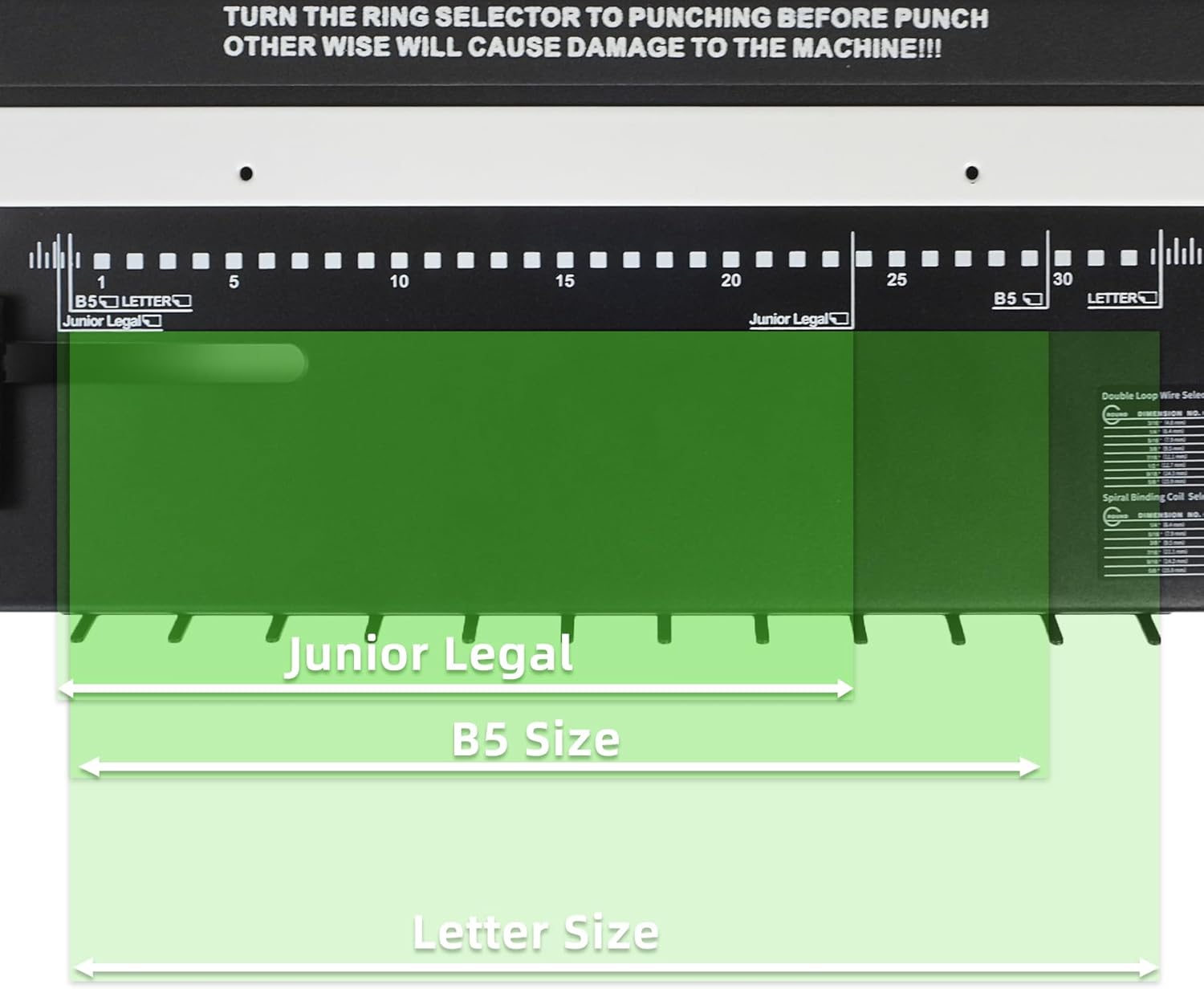 - Cost-effective: This machine is equipped with 3:1 pitch binding spines, including 3:1 pitch coil binding spines, 3:1 pitch click binding spines, and 3:1 pitch wire-o binding rings, making it ideal for various applications.