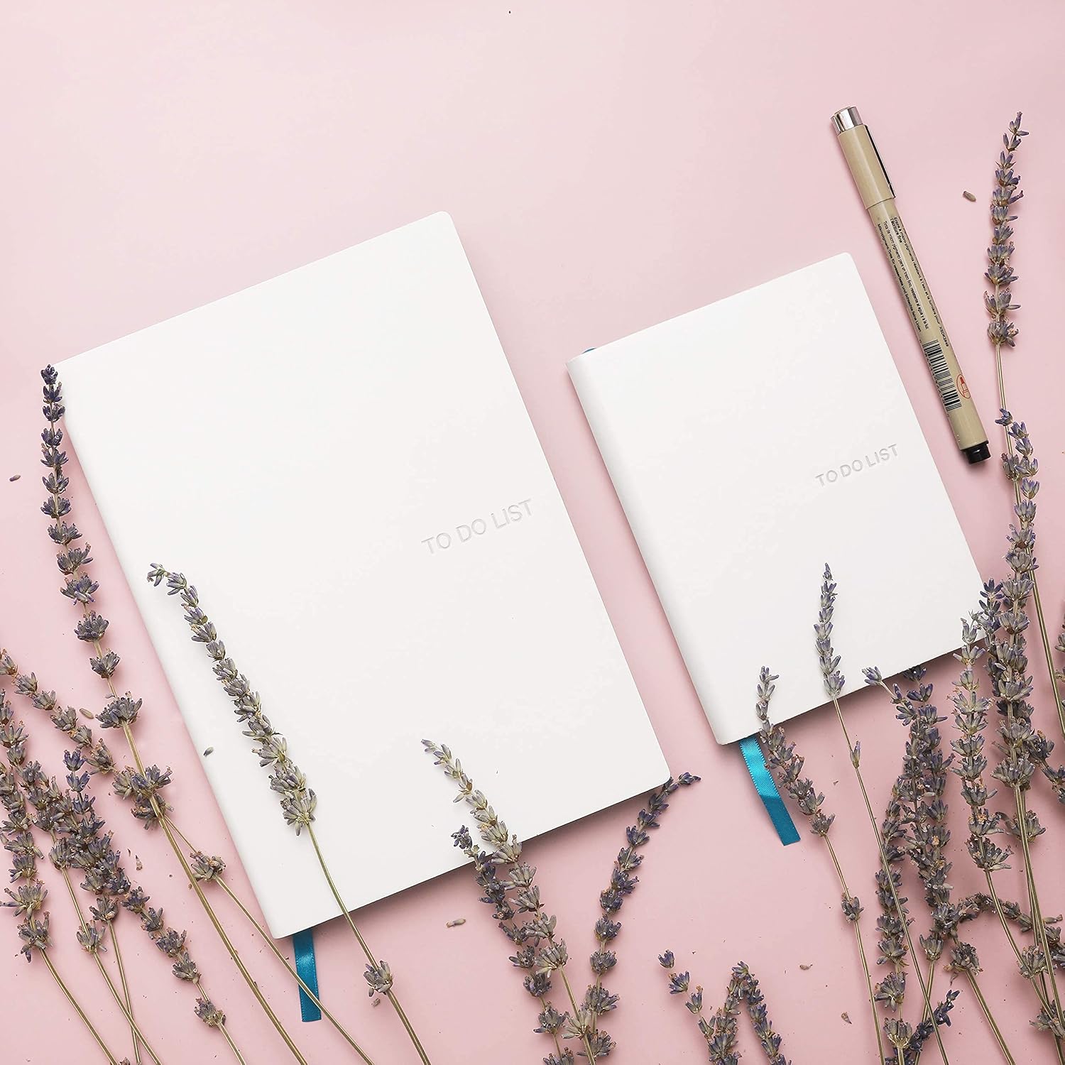 Daily to Do Checklist Notebook, Task Management, Organizer Planner, Hardcover, Ribbon Bookmark, 4.1 x 5.8”, A6 size, 110 Sheets (White)