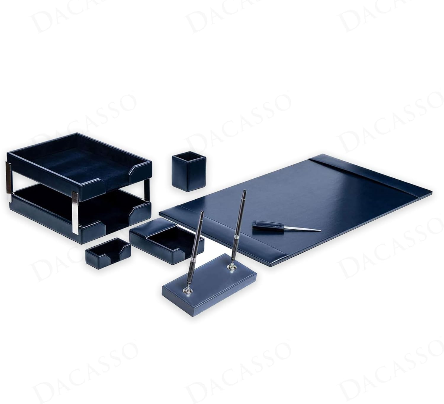 Dacasso Navy Blue Bonded Leather Luxury 9-Piece Desk Set - Blotter Pad & Desk Organization Essentials - Executive Decor and Surface Protector