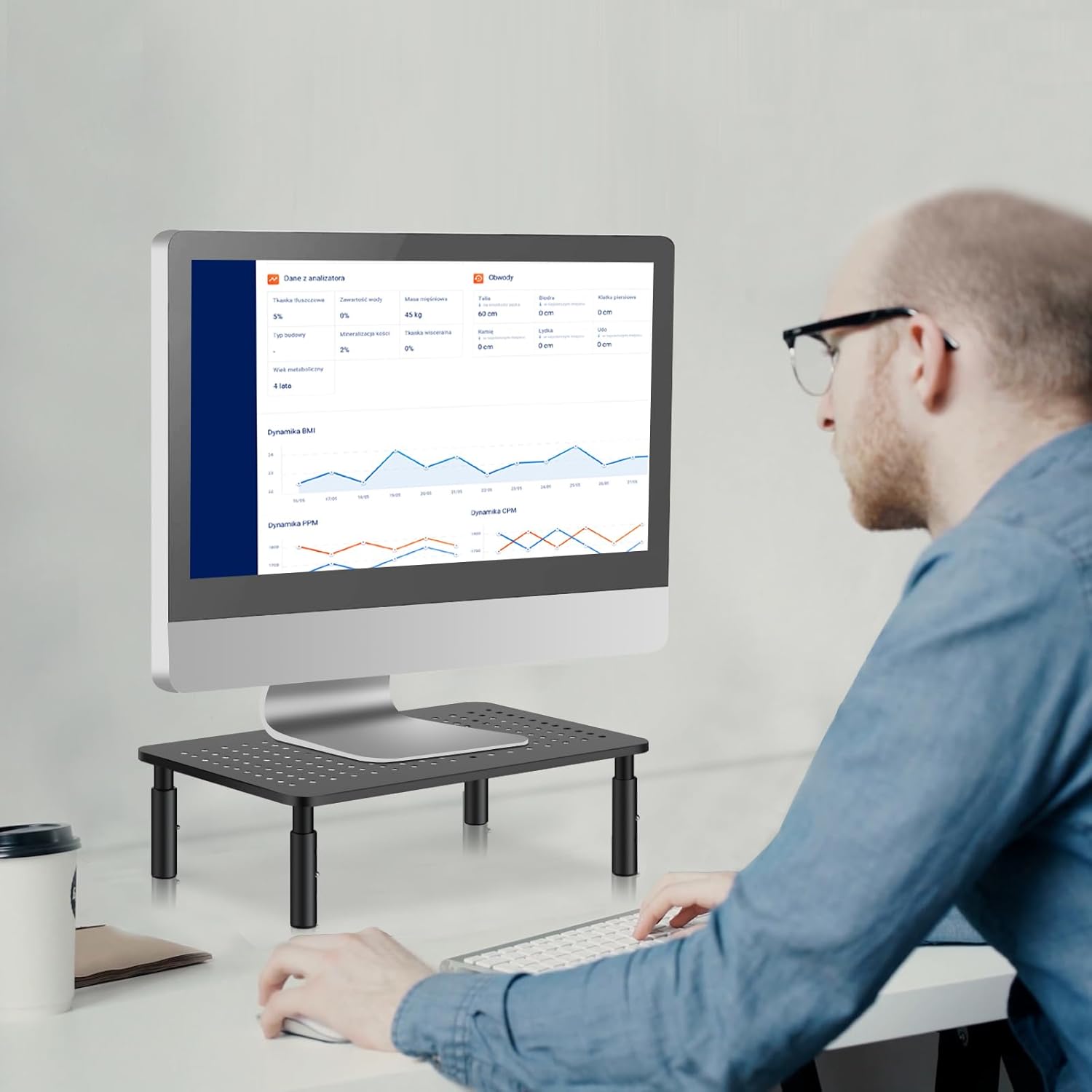 - 【3 HEIGHT ADJUSTMENT】- Fits all laptop brands and models of laptops, printers, gaming consoles, TVs and more devices.Comes With platform dimensions of 370X235MM (L x W) in size, this stand could raise your monitor by 3 adjustable height levels (100MM/120MM/140MM).maximize your desk space and keep your monitor at a proper height. Just press the button on the leg and lift the platform to adjust different height levels.