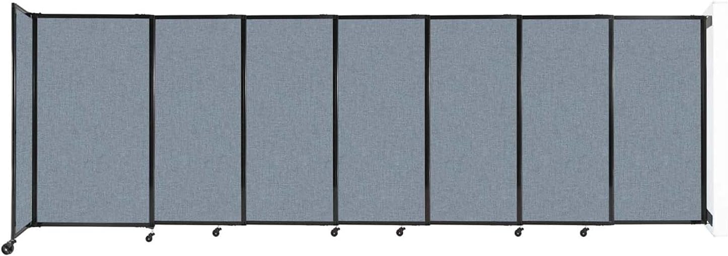 Wall-Mounted Sliding StraightWall Room Divider | Adjustable Widths | Locking Wheels | Room Separator | Up to 15'6" Wide x 5' Tall Powder Blue Fabric Panels