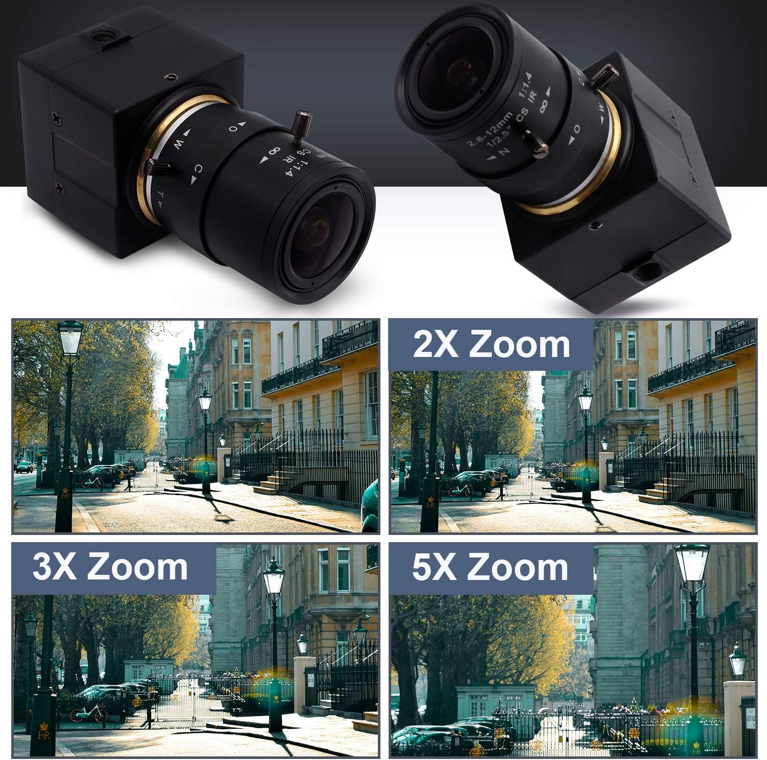 - 【2.8-12mm Varifocal Lens】: Full HD 1080P Webcam with CS mount 2.8-12mm zoom lens,5X optical zoom camera adjustable iris, focus and focal length for different angle and viewings,manual focusing helps for precise focusing and get the clear image accurately