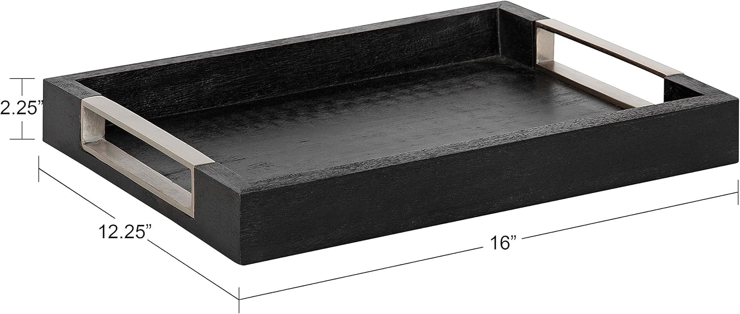 - SLEEK LOOK: This bold tray features a classic rectangular design with a sleek black finish and two handles with a nickel-plated finish
