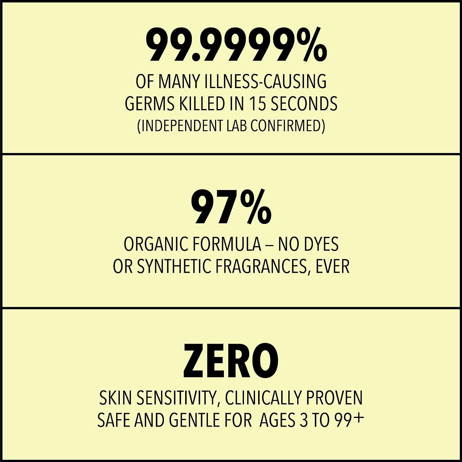 - 99.9999% Effective Against Many Illness-Causing Germs in 15 seconds