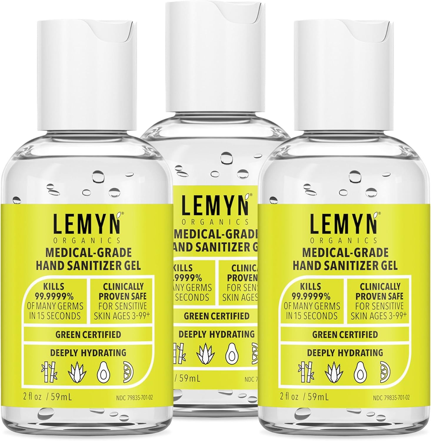 Medical Grade Hand Sanitizer Gel - 97% ORGANIC - 2 FL.OZ. PACK OF 3
