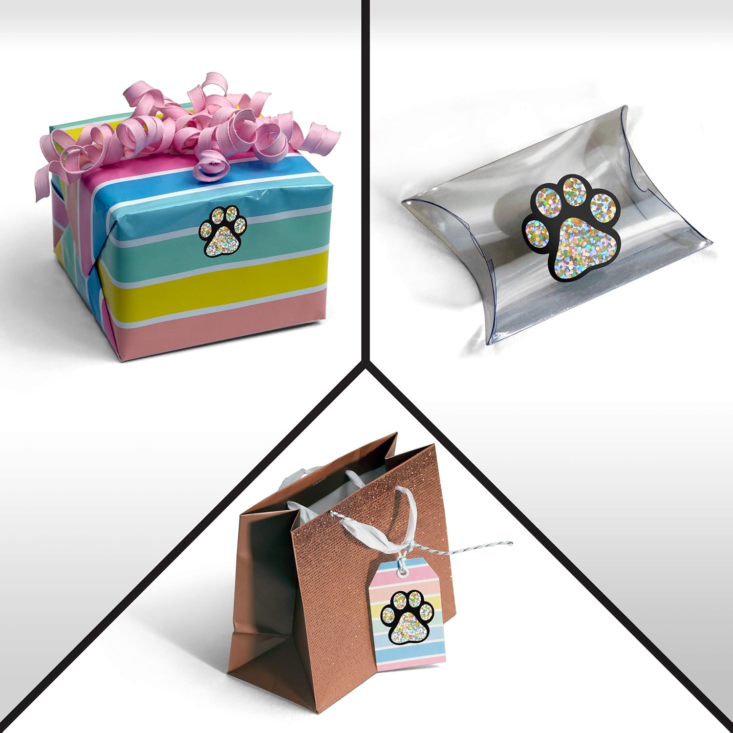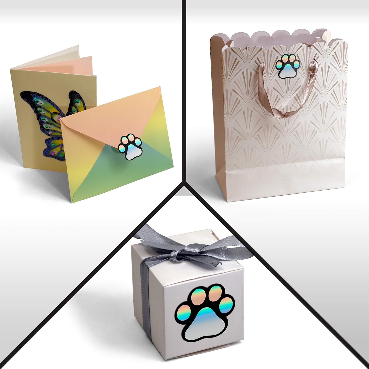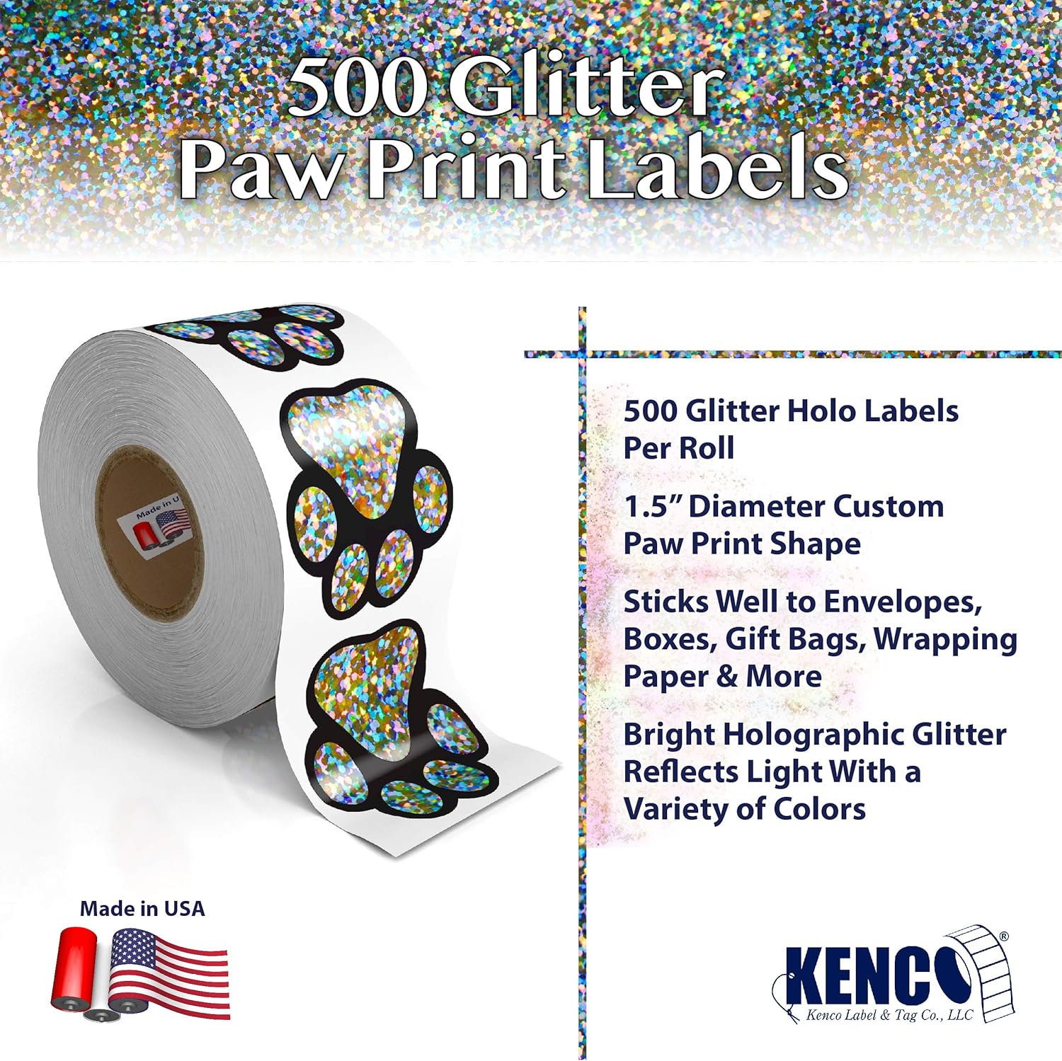 - Creates a rainbow effect with reflected holographic color! Share your gratitude with friends, relatives and customers in style with these Kenco paw print stickers, made with care by a multi-generation family business in the heartland of the USA.