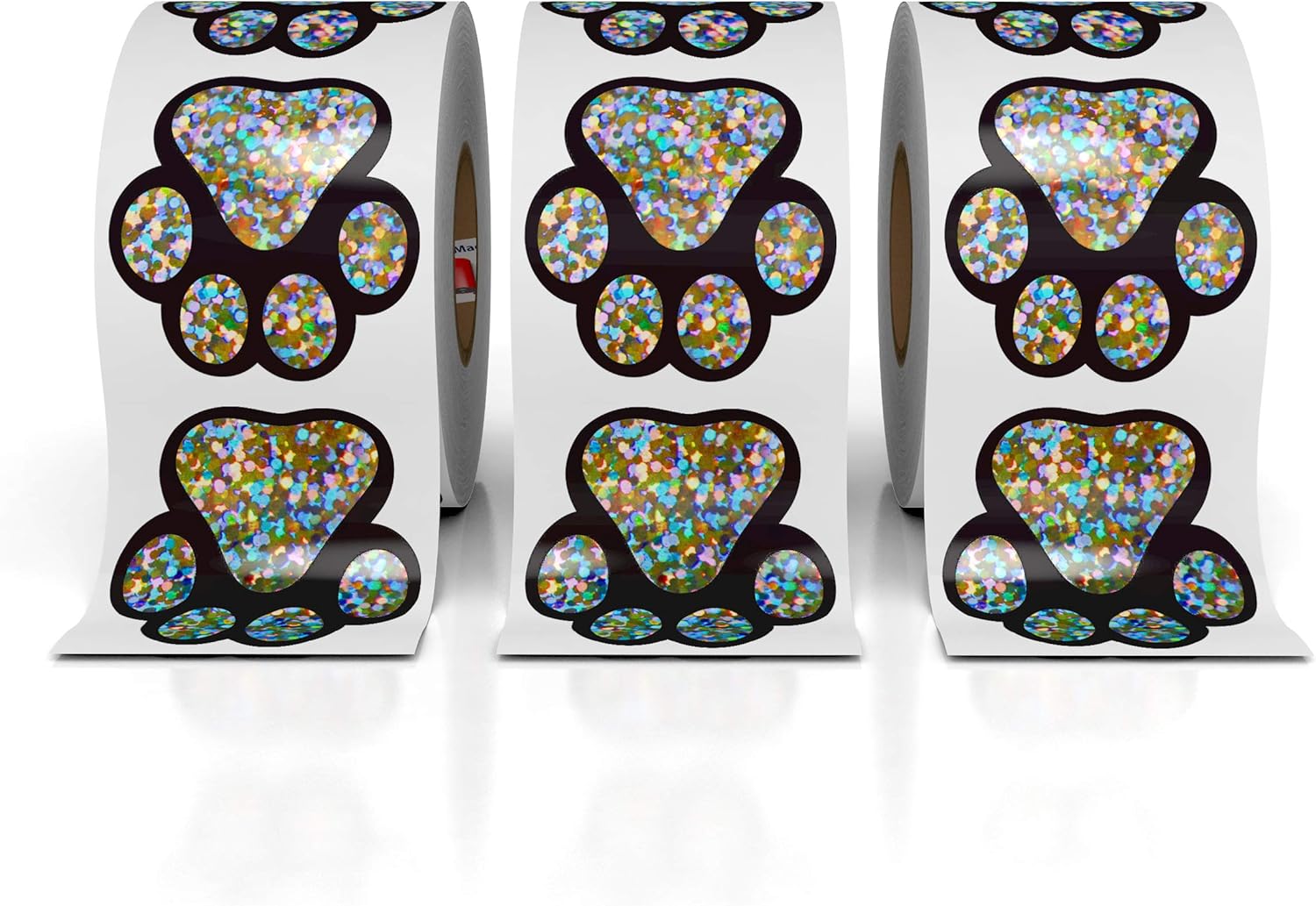 - 500 Total High Quality 1.5" Circle Glitter Holo Paw Print Stickers - Made by Kenco in the USA