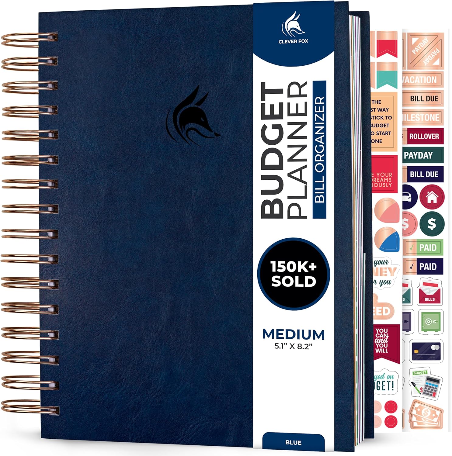Clever Fox Budget Planner & Monthly Bill Organizer With Pockets. Expense Tracker, Budgeting Journal & Financial Book. Medium, 5.1x8.2" (Dark Blue)