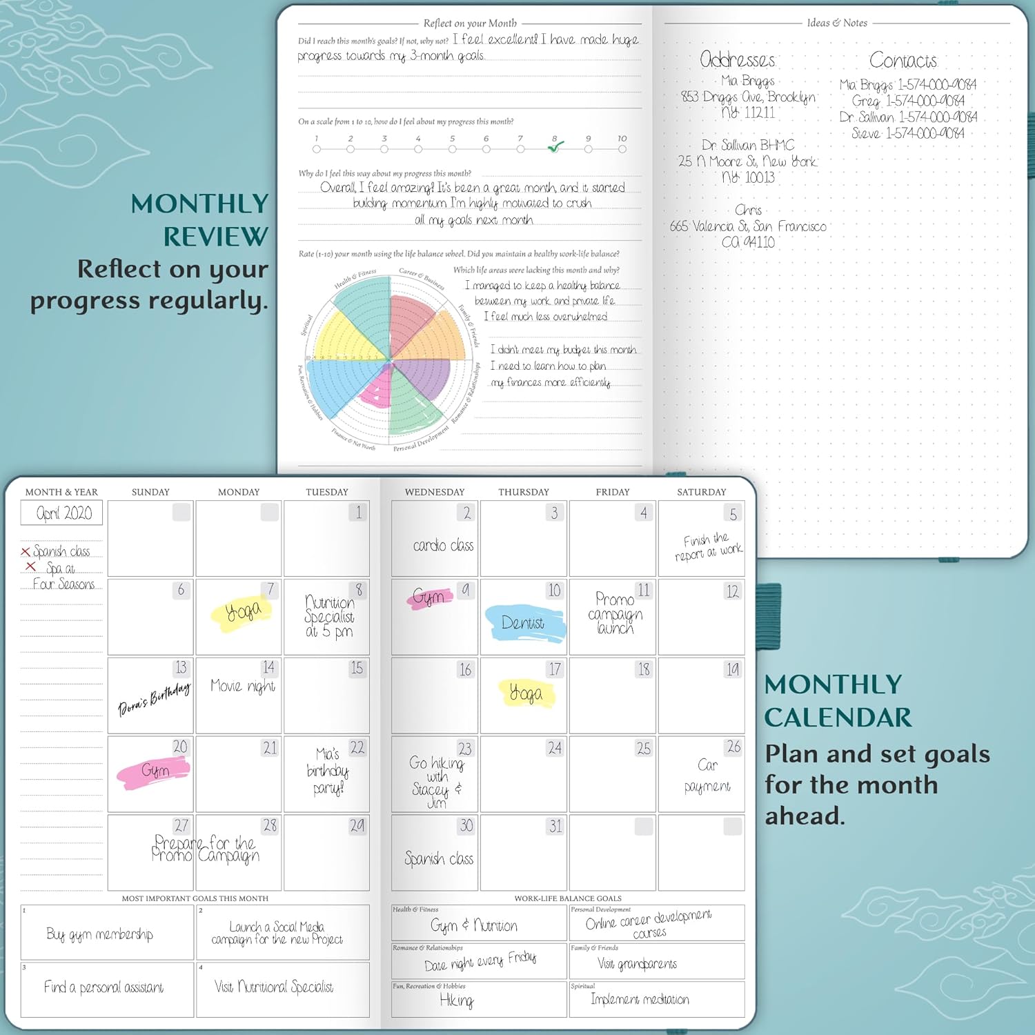 - STAY ORGANIZED & BOOST PRODUCTIVITY – Use spacious monthly calendars and weekly pages to set goals, tasks, deadlines, and appointments. Easily manage your schedule with convenient 6 AM to 9 PM time slots.