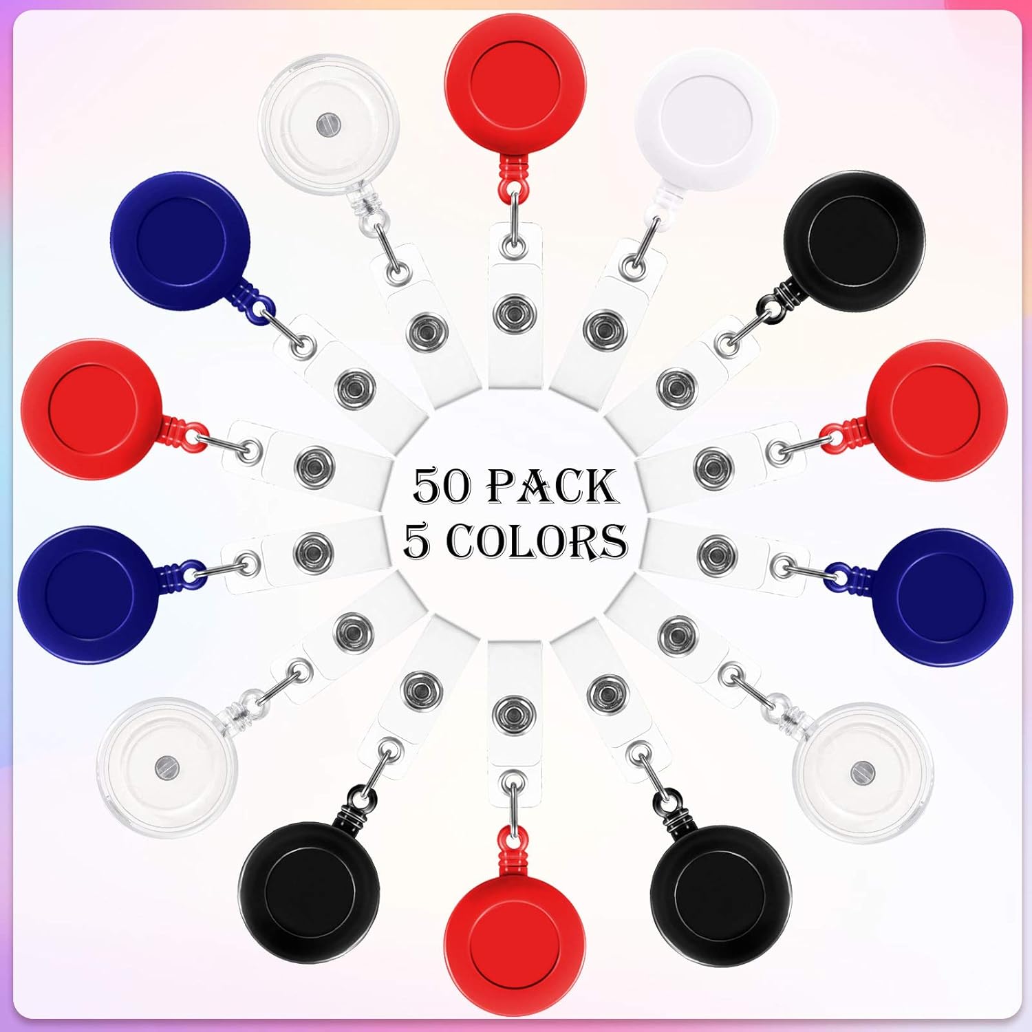 - Sufficient quantity: you will get 50 pieces of retractable ID name badge reels in 5 different colors, 10 pieces for each color, enough to meet your daily use and replacement demands, you can also share with your family, friends or colleagues