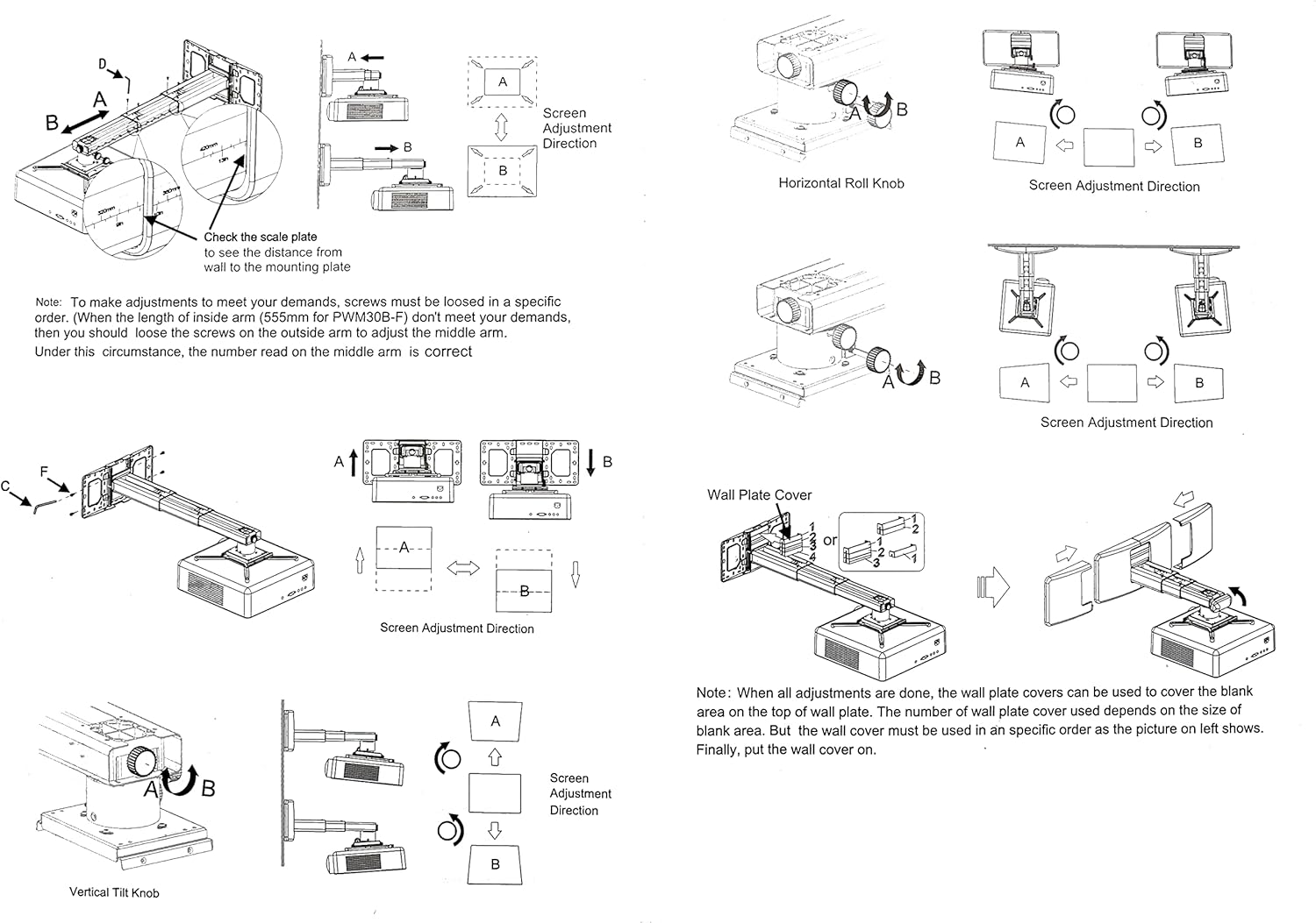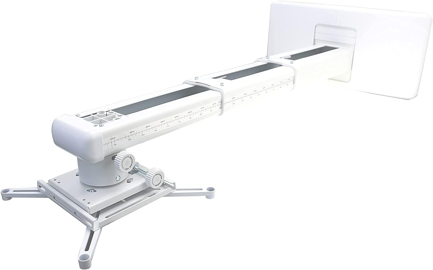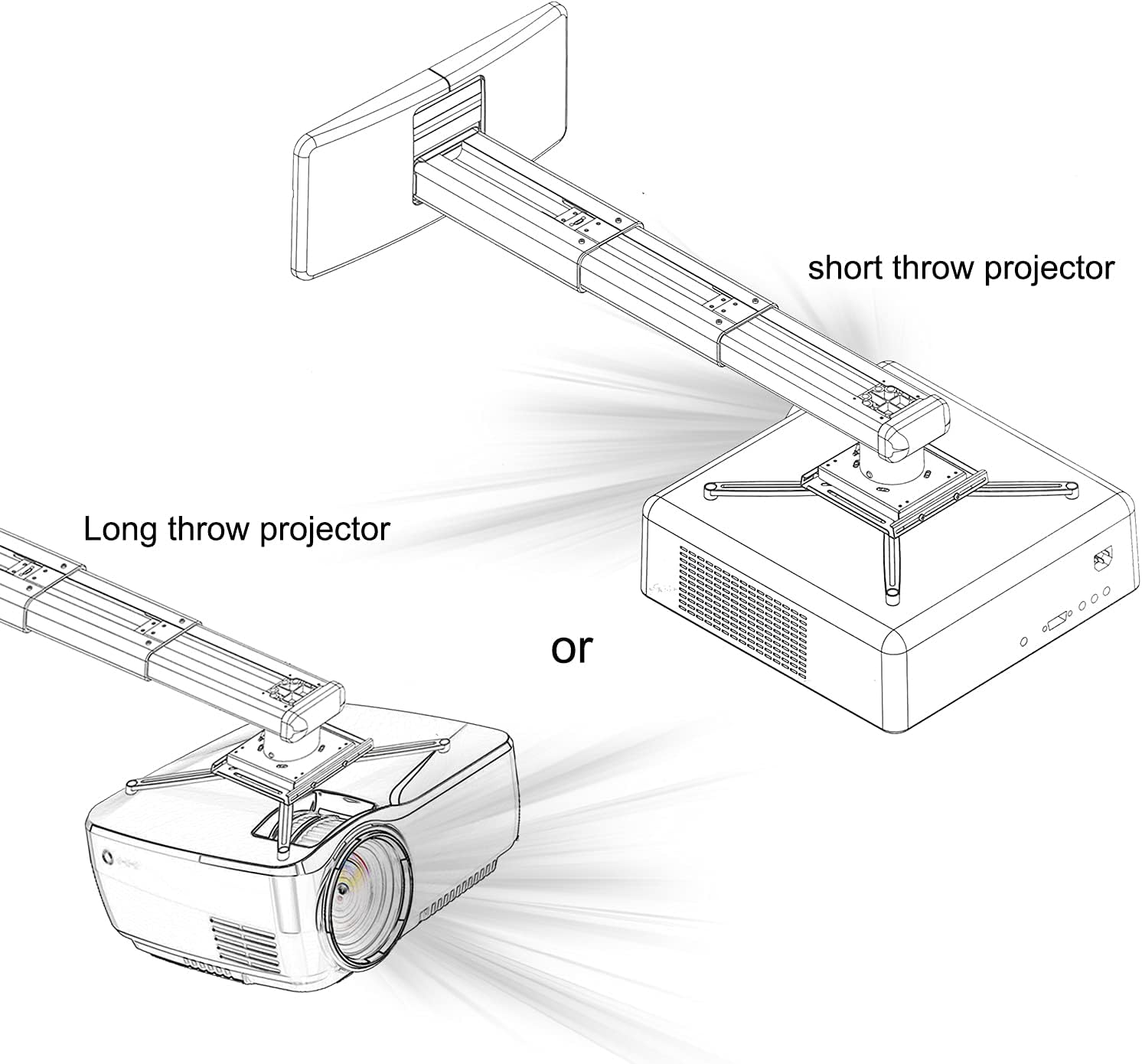 - The mounting plate of the projector bracket has four adjustable and freely retractable horizontal axis mounting arms, which is a universal mounting bracket for ultra short distance projectors. The maximum distance between mounting holes on the back of the projector must be less than 12.5 inches.