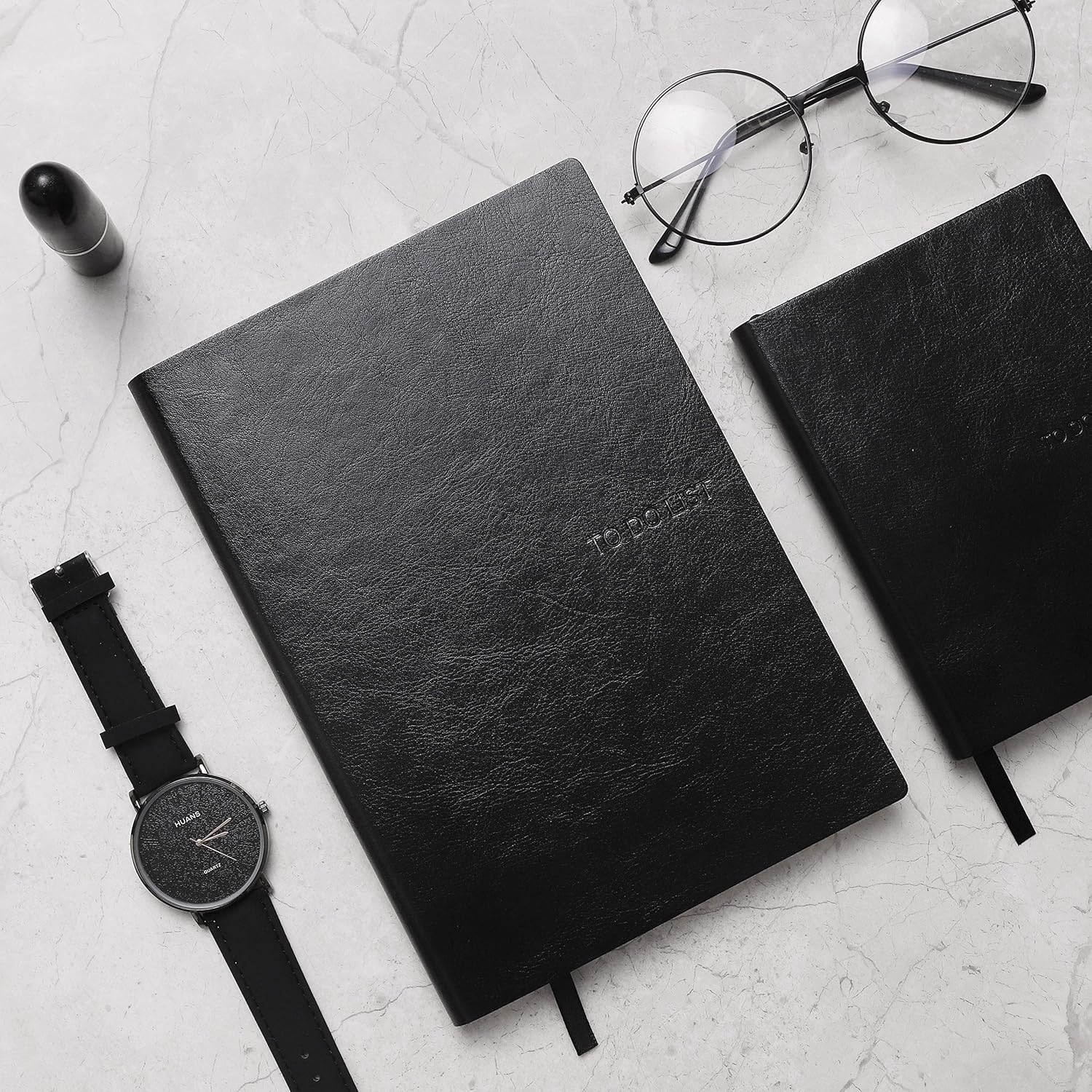 Daily to Do Checklist Notebook, Task Management, Organizer Planner, Hardcover, Ribbon Bookmark, 5.8 x 8.3”, A5 size, 110 Sheets (Black)