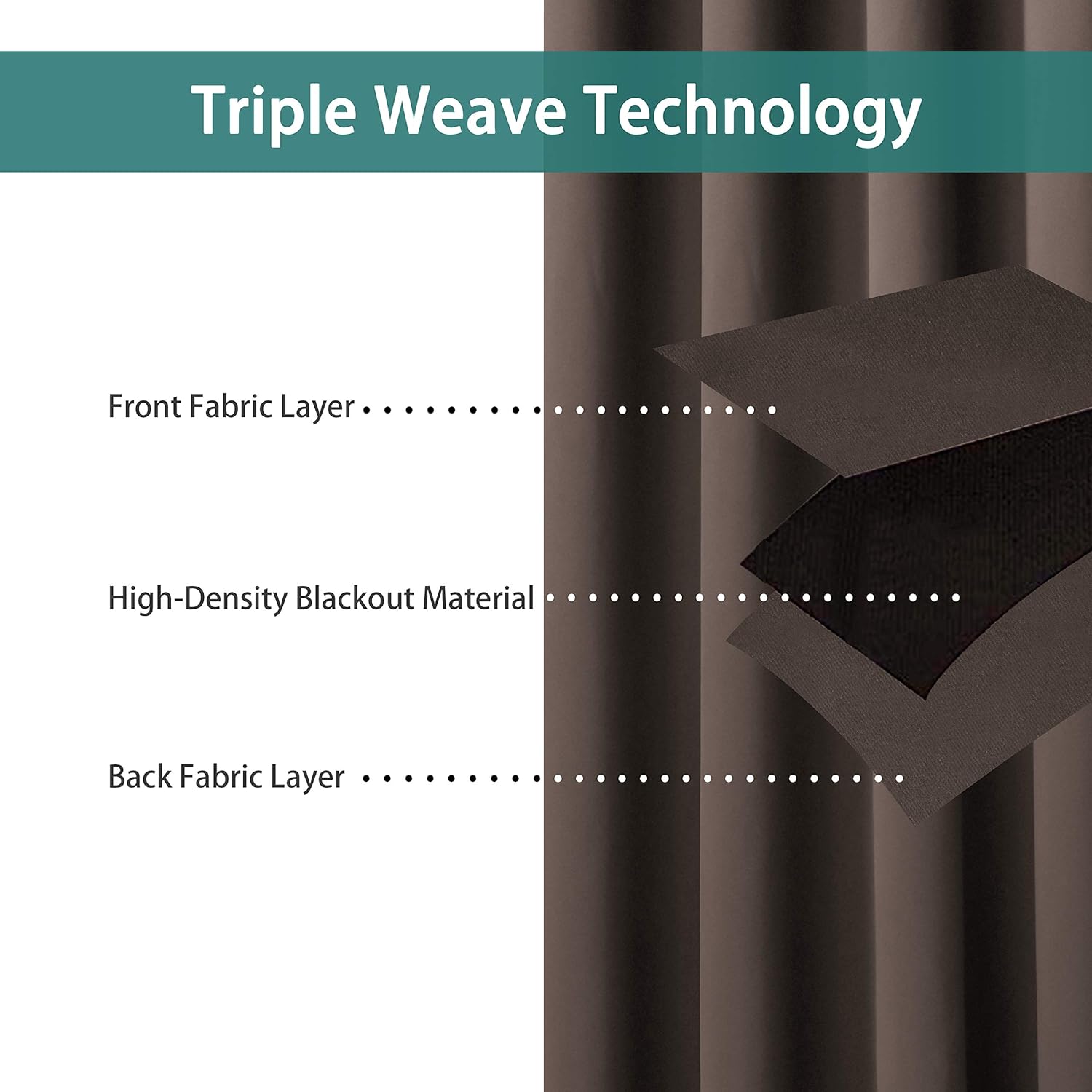 - PREMIUM BLACKOUT MATERIAL: Our room darkening curtain is made of 100% polyester fabric and have the same color with the front and back. Crafted in a certified STANDARD 100 by OEKO‑TEX factory from a durable soft and thick triple weave blackout fabric which block out 90% above sunlight and UV rays. Darker colors work better.