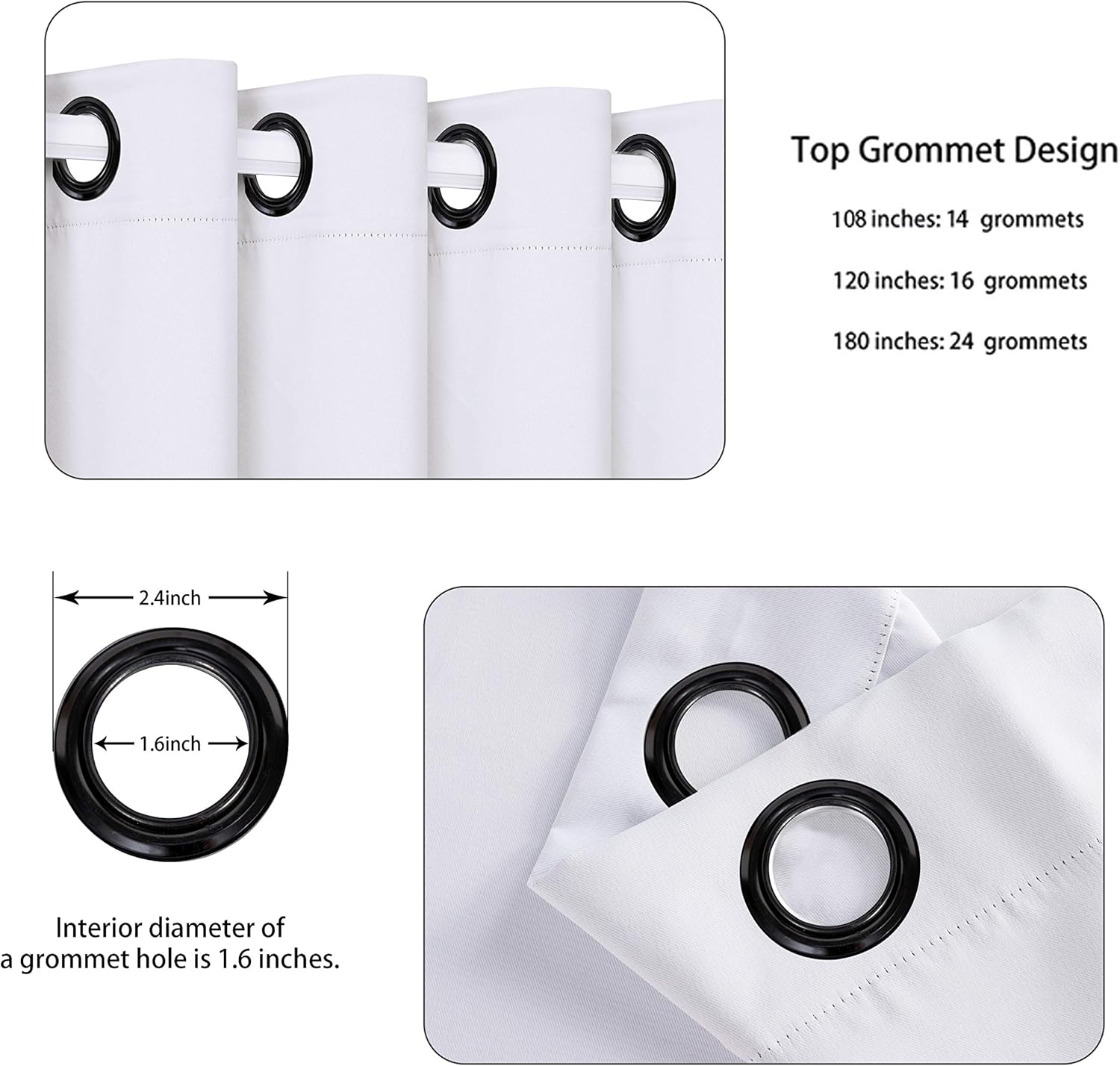 - WHAT'S IN THE PACKAGE? Each set includes 1 curtain panel, and each window drape measures 108-inch (9 ft) length by 150-inch (12.5 ft) width. 14 elegant metal grommets with 1.6-inch inner diameter, fit well with standard or decorative curtain rods, which makes the curtains easy to install and slide.