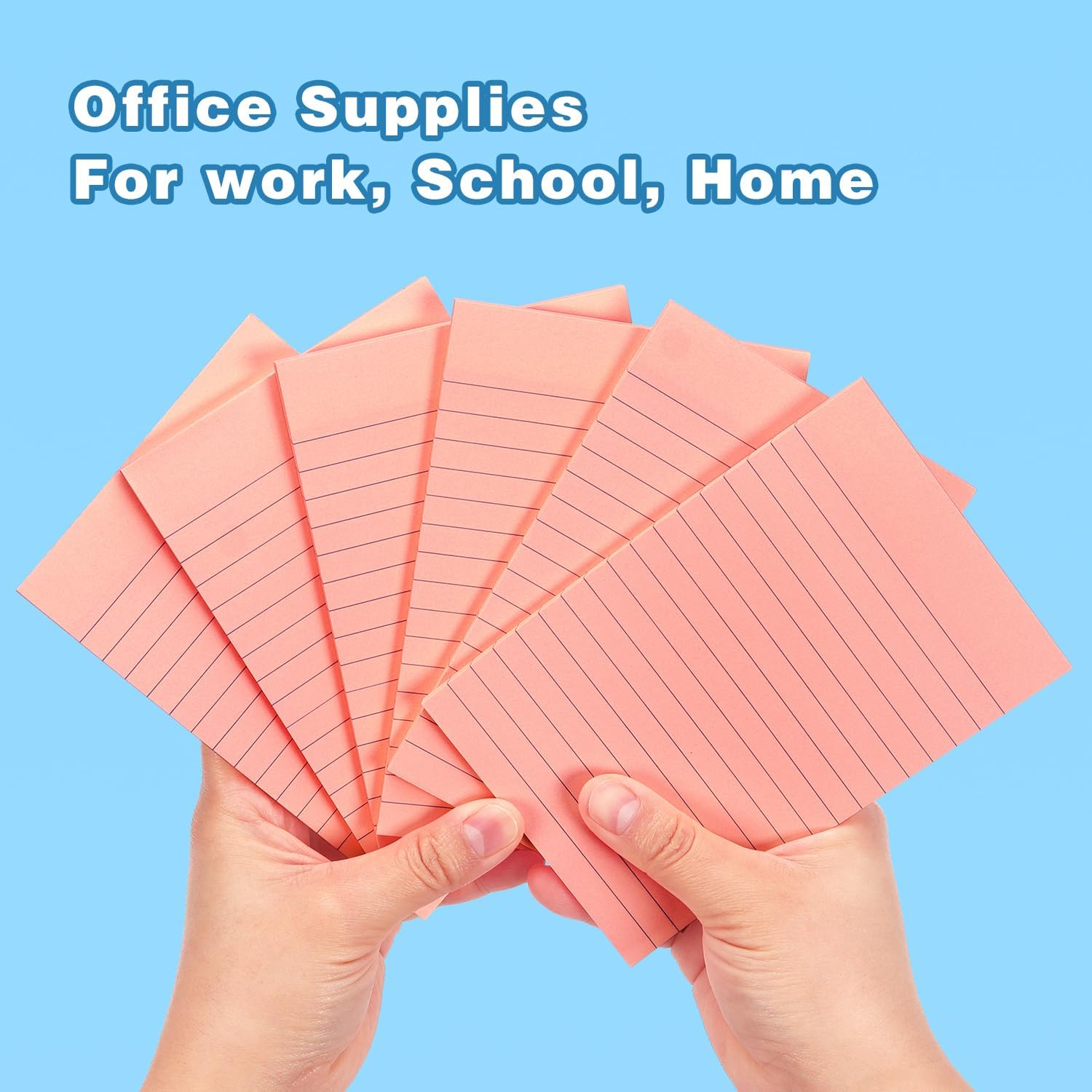 Early Buy 6 Pads Lined Sticky Notes with Lines 4x6 Self-Stick Notes Bright Color Sticky Notes, 45 Sheets/Pad (Pink)