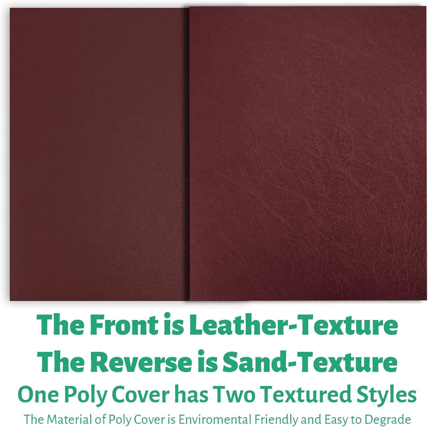 Binditek 50 Pack 16 Mil Leather Textured Polycovers - Binding Presentation Covers for Business Reports and Proposals, 8-1/2 x 11", Maroon, Office Supplies