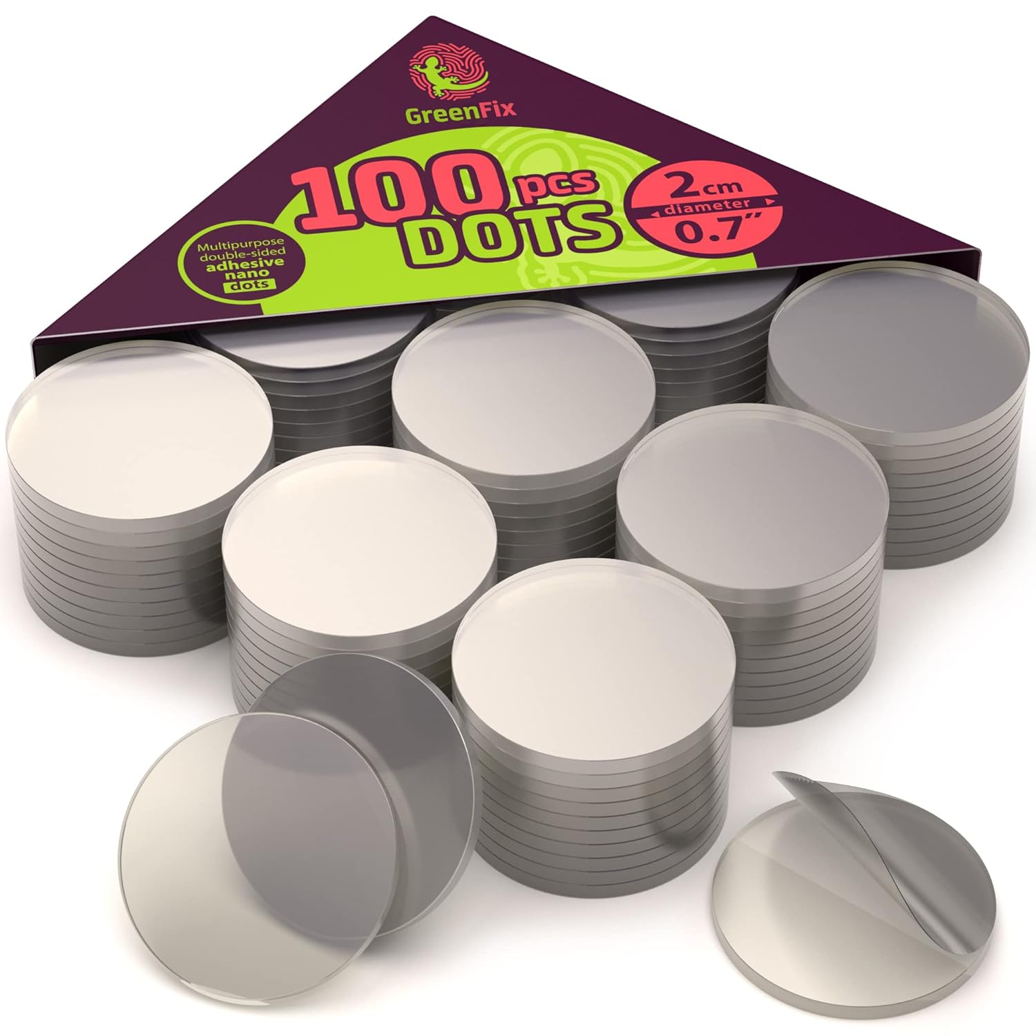 - 🦎 PRACTICAL SIZE: adhesive nano dots set includes 100pcs of 2cm (0.7in) in diameter and 1mm (0.04in) thick sticky dots. Convenient size and shape to use as picture hangers, crafting supplies!