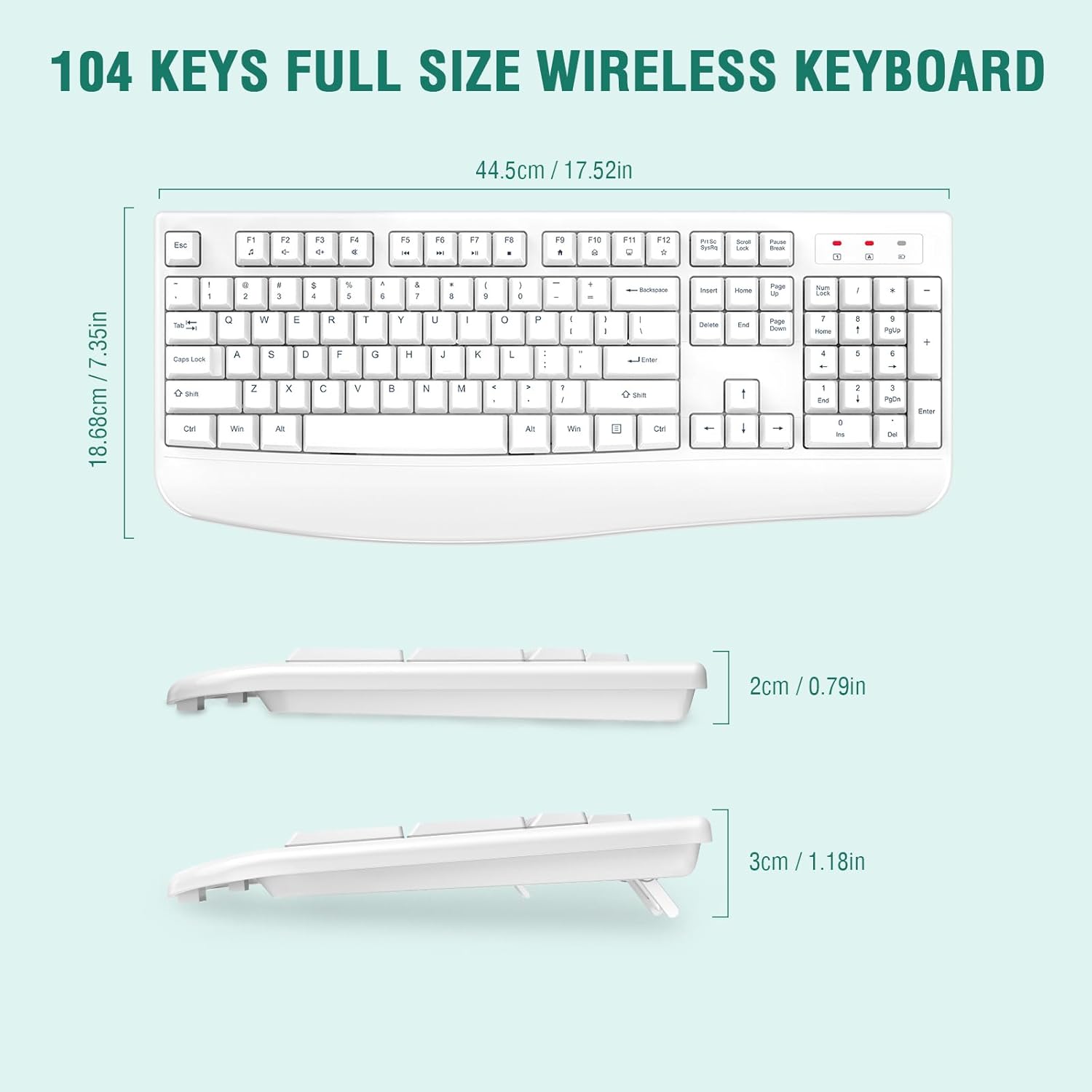 EDJO Wireless Keyboard, 2.4G Ergonomic Full Size Wireless Computer Keyboard with Wrist Rest for Windows, Mac OS Desktop/Laptop/PC(White)