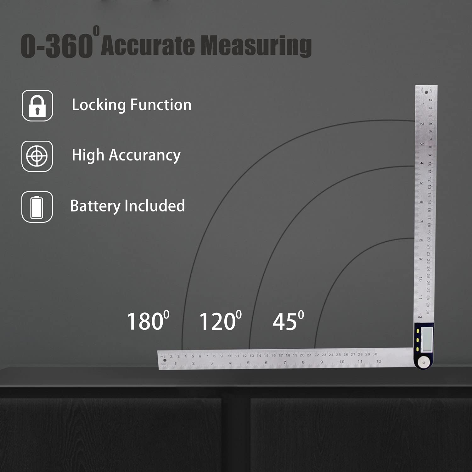 Delgada 12 inch/300mm Digital Angle Ruler and Stainless Steel Digital Angle Finder or Digital Protractor with Zeroing and Locking Function Battery Included
