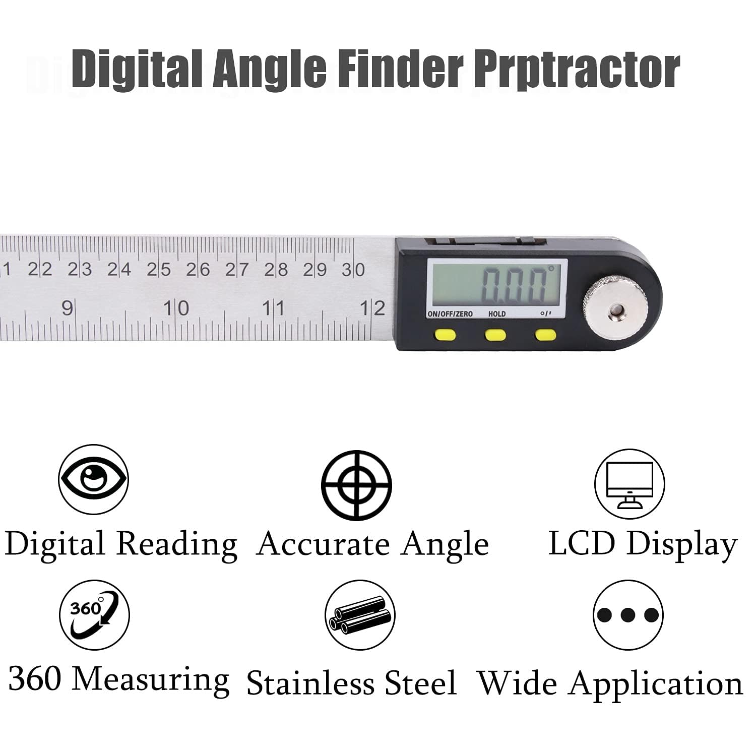 - LCD display: The protractor has a clear, easy-to-read LCD display, and you don't need look and guess at the angle and length anymore.or read it easily,Digital protractor has lock and reverse angle functions that make all types of work easy and fast