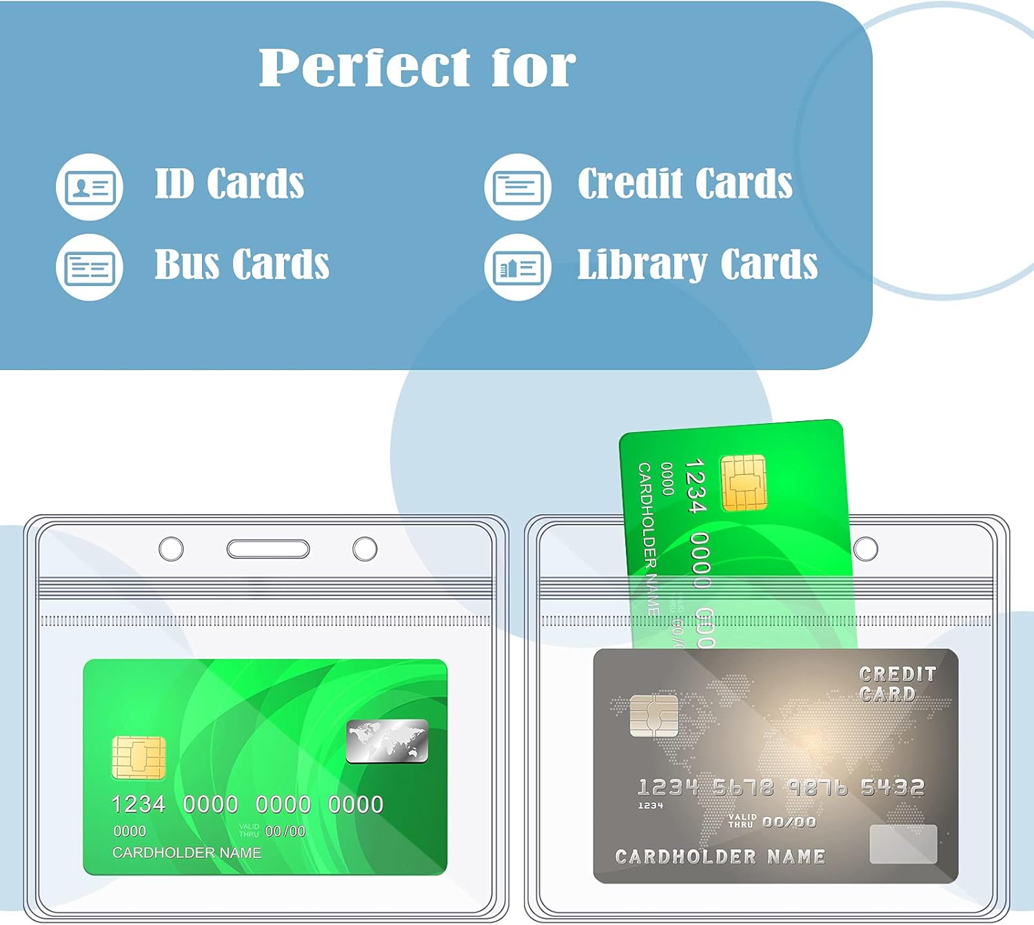 - Waterproof card holder: adopting horizontal design, each clear badge holder can accommodate up to 5 ID cards the size of a credit card, it can keep your name card, ID card or traffic pass safe and dry