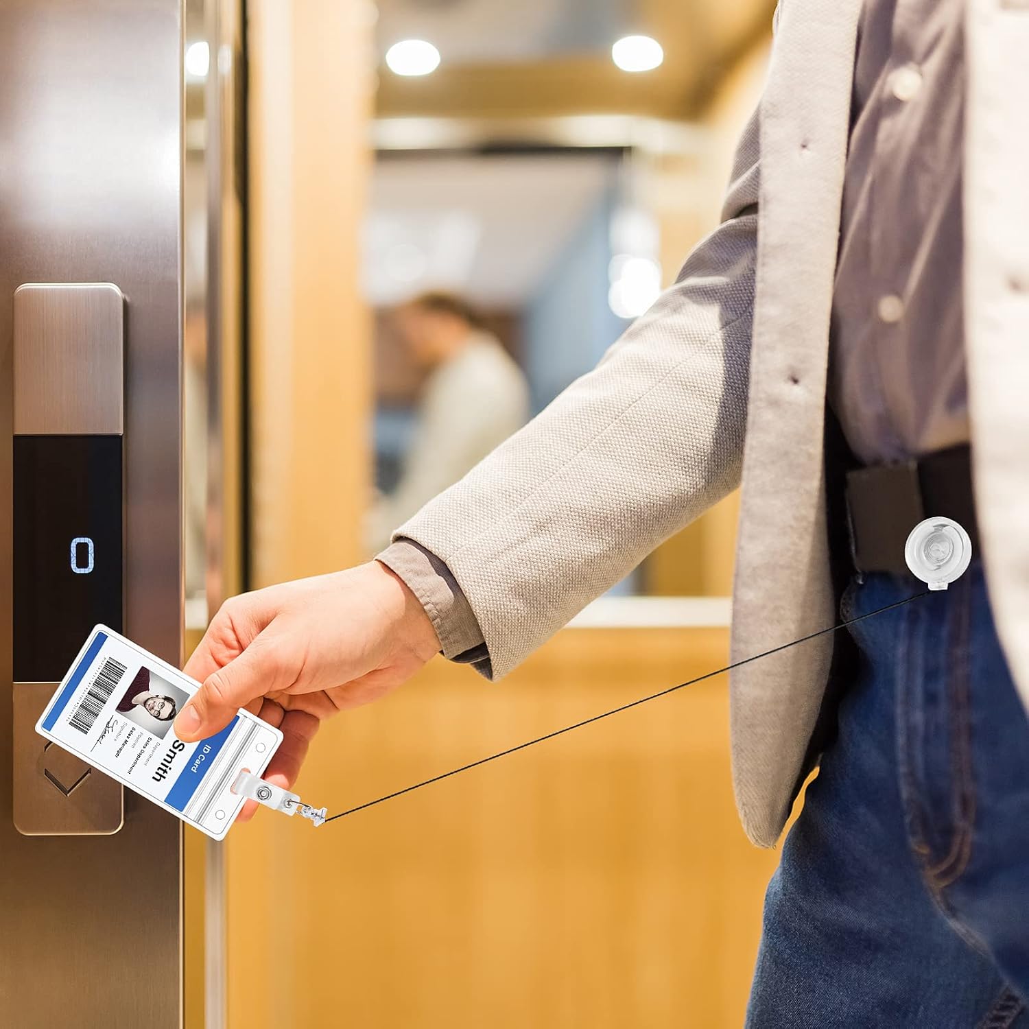 - 【NO TWIST BADGE HOLDER RETRACTABLE】: Id badge holders retractable have a unique no twist structure, retractable clip ensures that your ID card will not be turned over and will always be on the side you need to show. Retractable badge holder with a belt clip, which can be hung not only on your chest, but also on a backpack, belt, or pocket