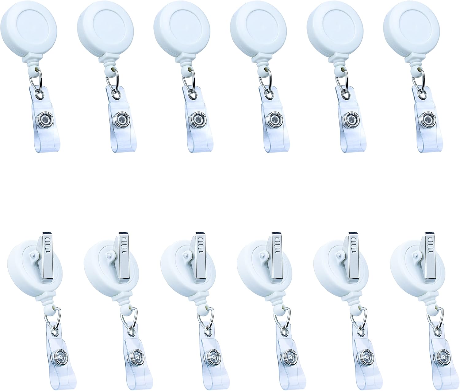 Badge Reels Retractable Badge Holder with Clip, Id Clips for Badges, Id Badge Reel, Retractable Id Badge Clip with Clear Vinyl Strap & Alligator Swivel, No Twist Dispenser (White)