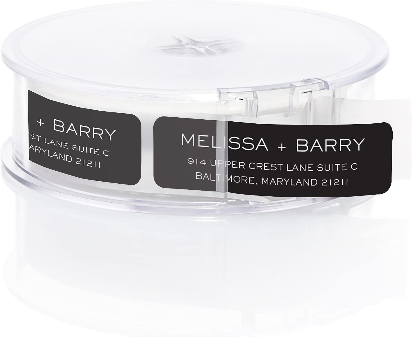Striking Black Modern Rolled Address Labels/Roll of 500 Personalized Address Labels/Designer Return Address Stickers in Elegant Plastic Dispenser