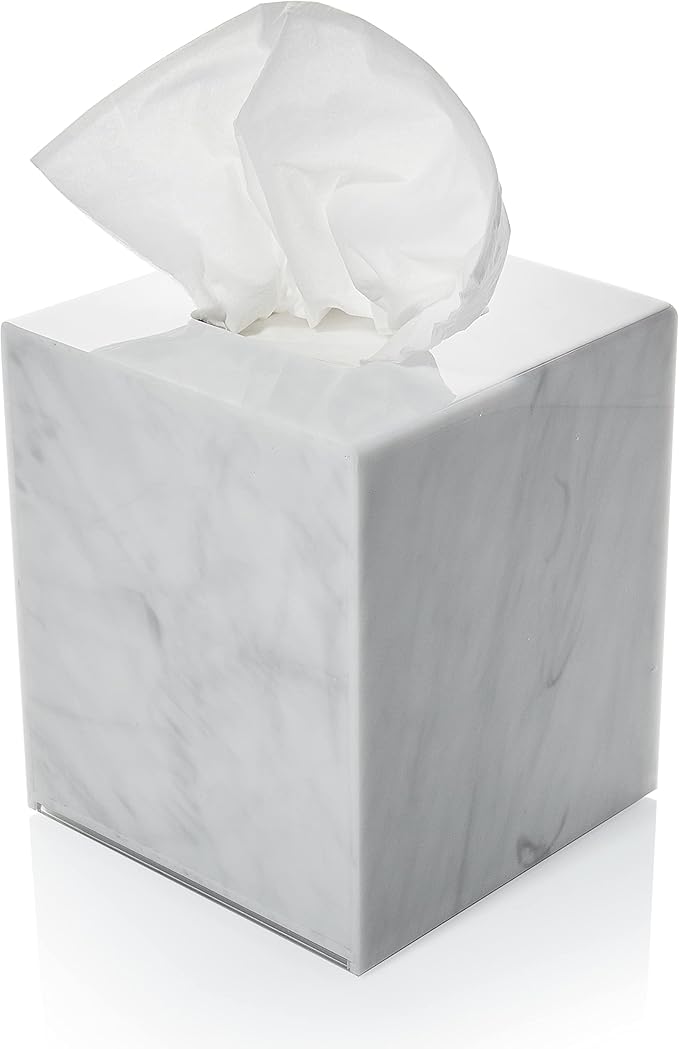 Acrylic Tissue Box Holder, Square Dispenser for Facial Tissues, Napkins, and Dryer Sheets. Perfect for Bathrooms, Desks, Countertops, Vanities, Bedrooms, and Nightstands (Square, Marble)