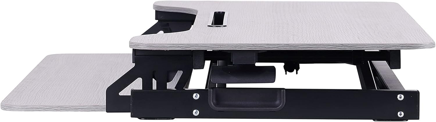 - ERGONOMIC KEYBOARD TRAY: 4" spacing between keyboard tray and desktop keeps monitor at proper ergonomic height to prevent neck strain while sitting or standing. Large 29" x 10" keyboard tray size will hold a laptop if needed. Quick disconnect keyboard tray allows portable use.