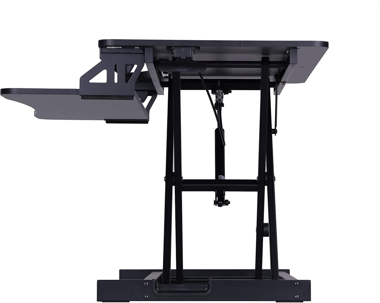 Rocelco Standing Desk Converter 31.5 Inch Sit Stand Up Dual Monitor Tabletop Riser with Tablet Mount, Height Adjustable Home Office Workstation - Deep Keyboard Tray for Laptop Mouse - Black (R VADRB)